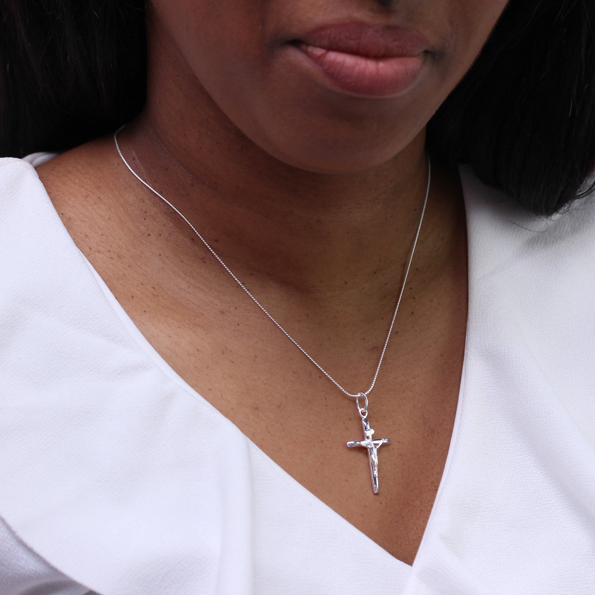 Große Halskette mit Kreuzanhänger aus Sterlingsilber 16–22 Zoll