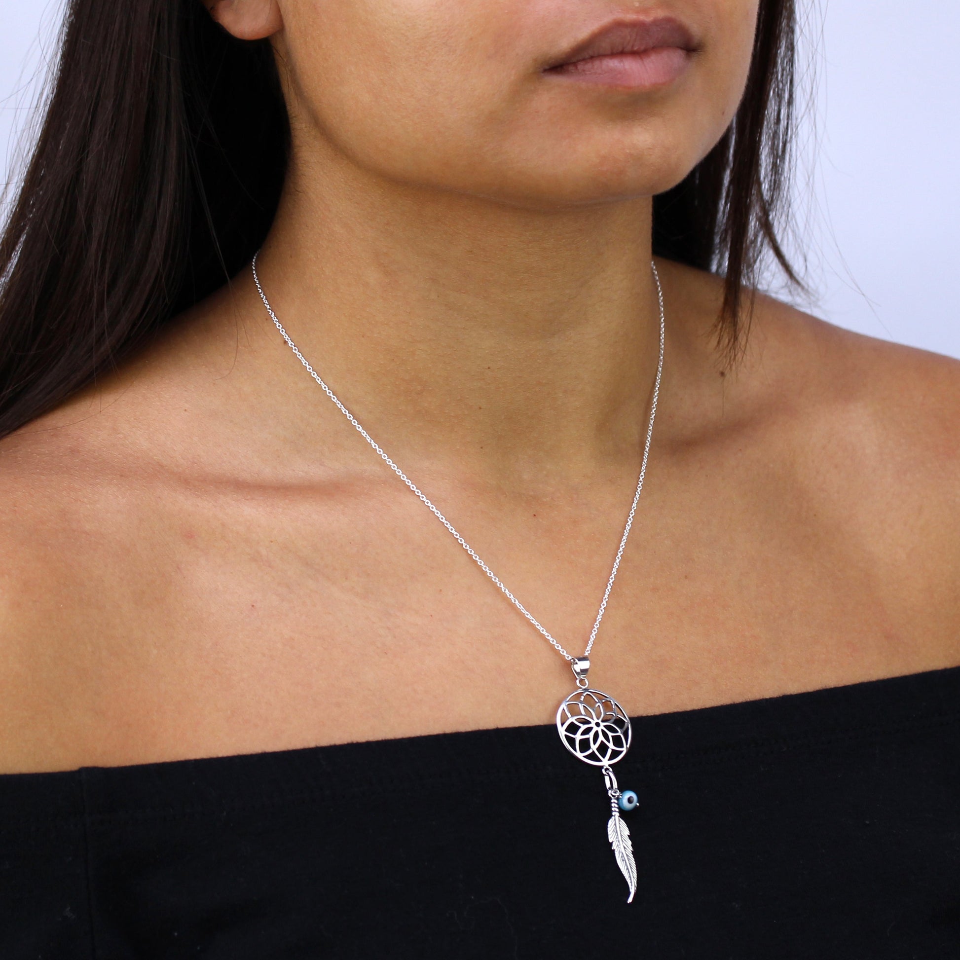 Große Halskette aus Sterlingsilber mit Traumfänger-Anhänger