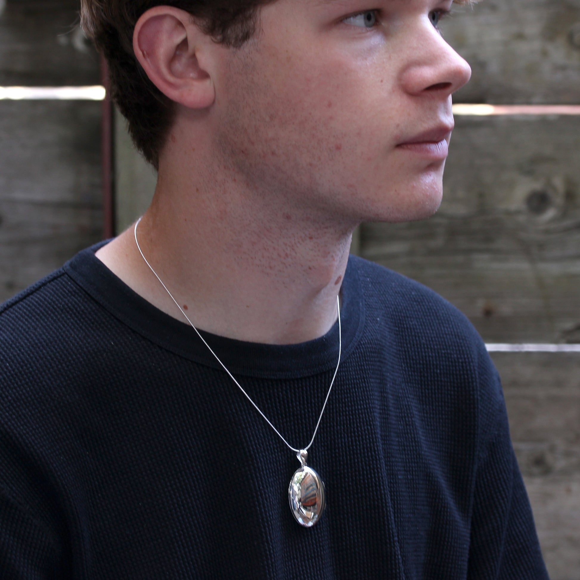 Großes ovales Medaillon aus Sterlingsilber mit Gravur und Kette, 16–22 Zoll