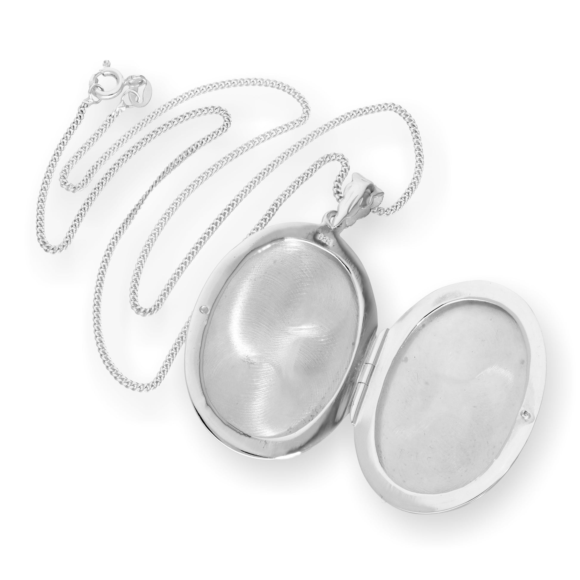 Großes graviertes ovales Medaillon aus Sterlingsilber mit Kette, 16–24 Zoll