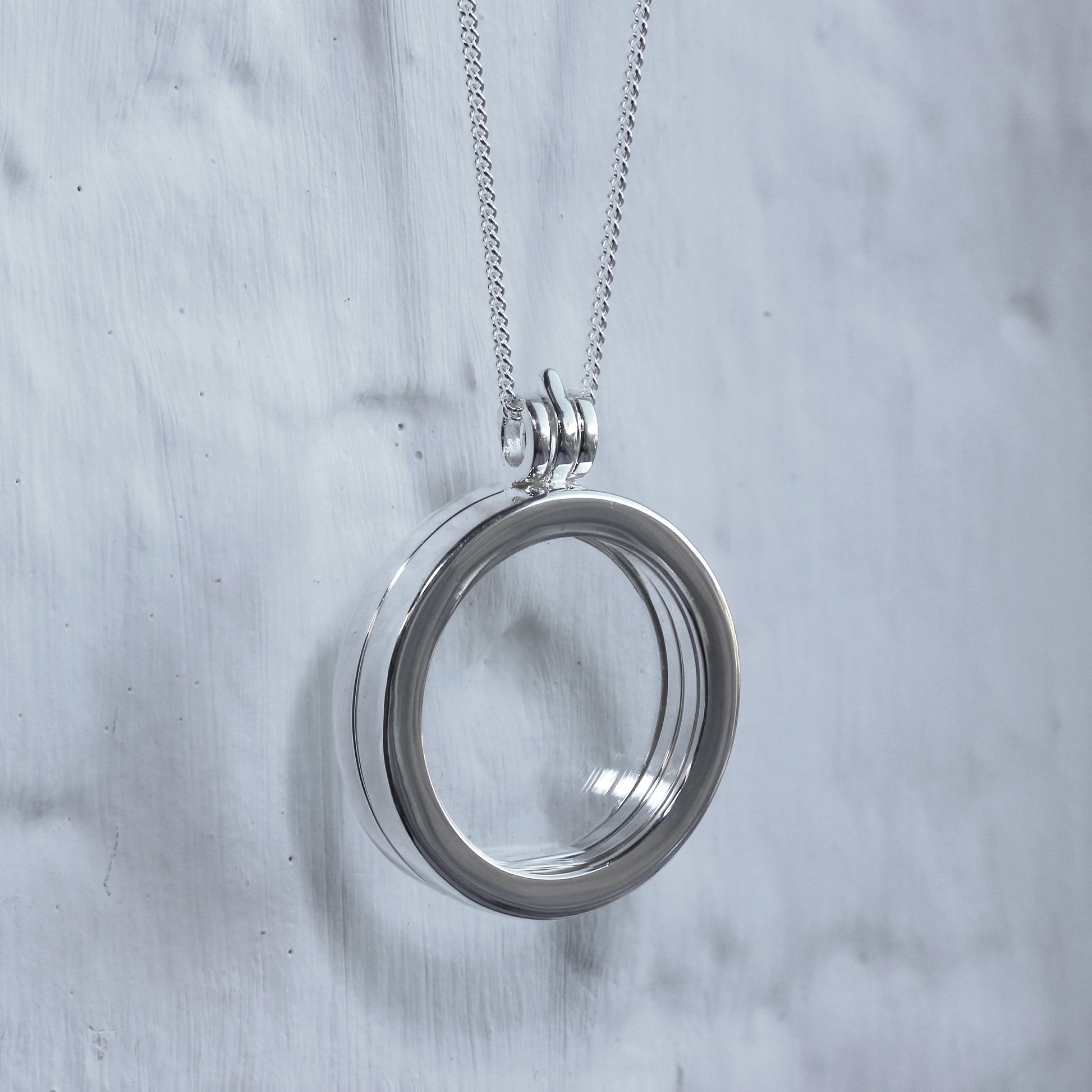 Groß Sterlingsilber Rund Schwebend Anhänger Medaillon an Kette von 40,5 bis 61cm