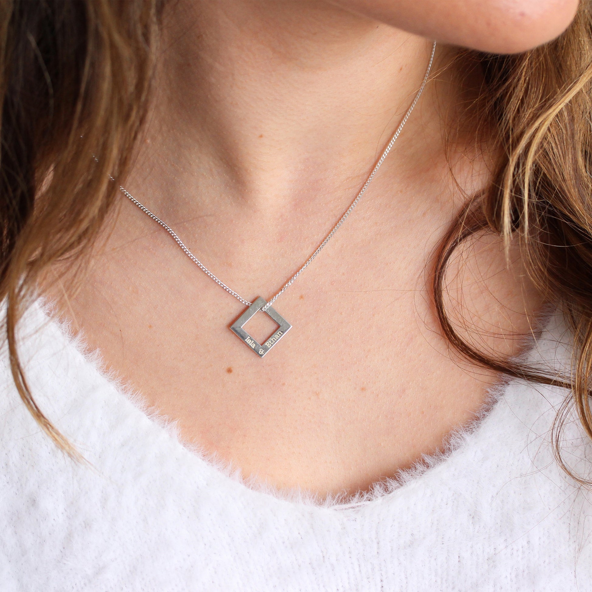 Personalisierte Halskette aus Sterlingsilber mit Familiennamen in quadratischer Form