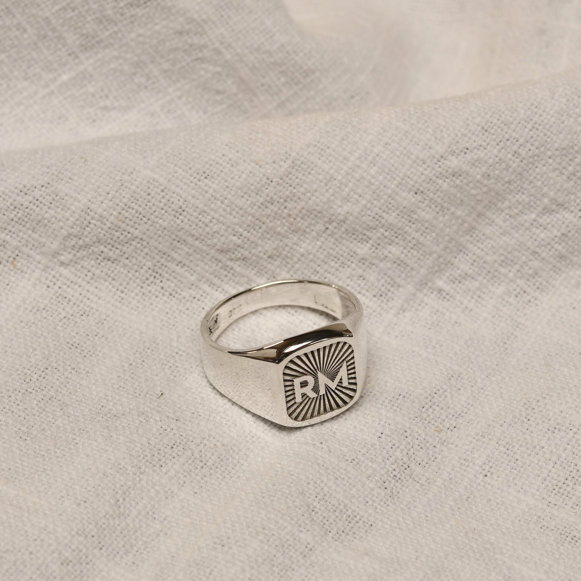 Personalised Sterling Silver Square Starburst Initial Signet Ring Size M - Z+1
