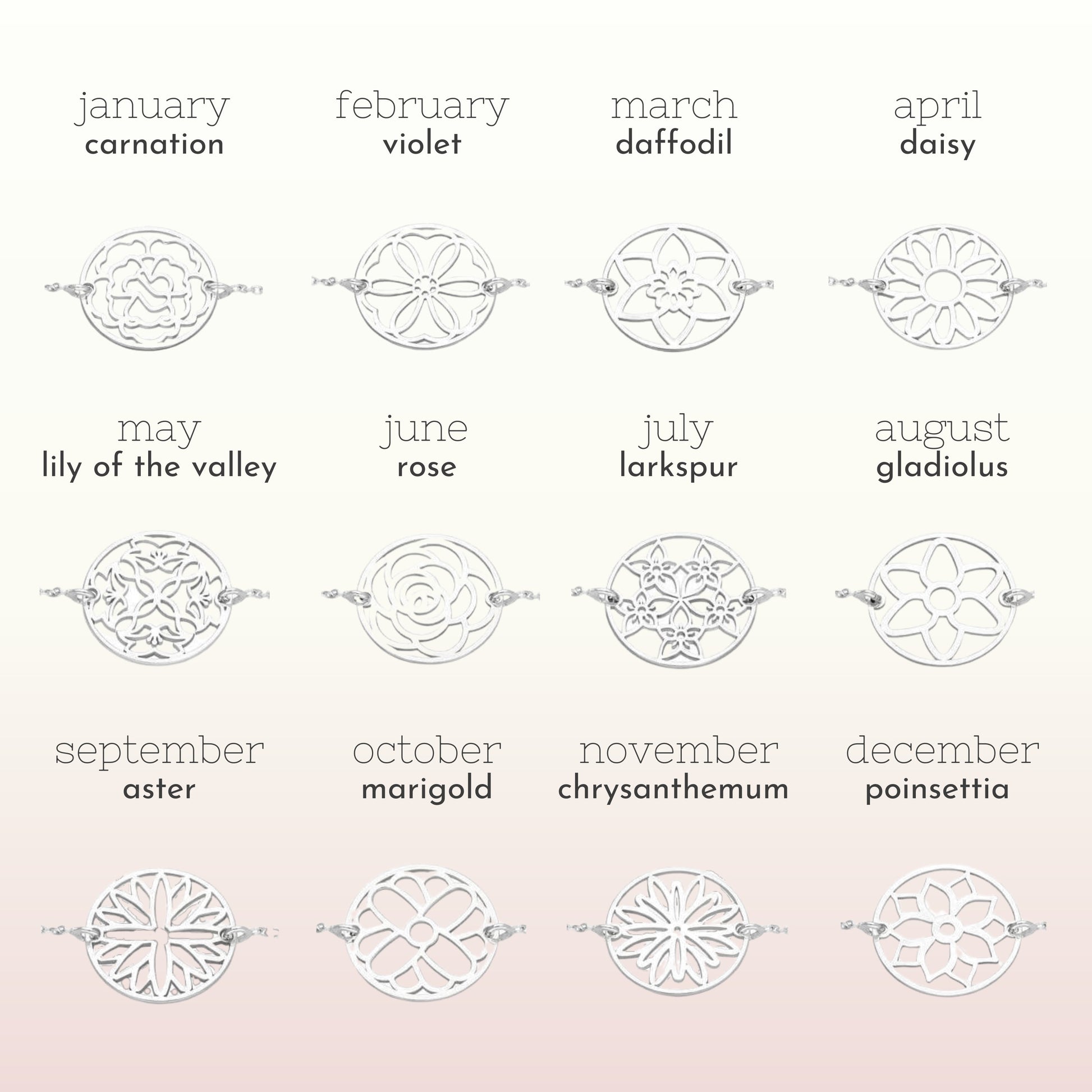 Personalisiertes Sterling Silber Geburtsblume Verstellbares Armband
