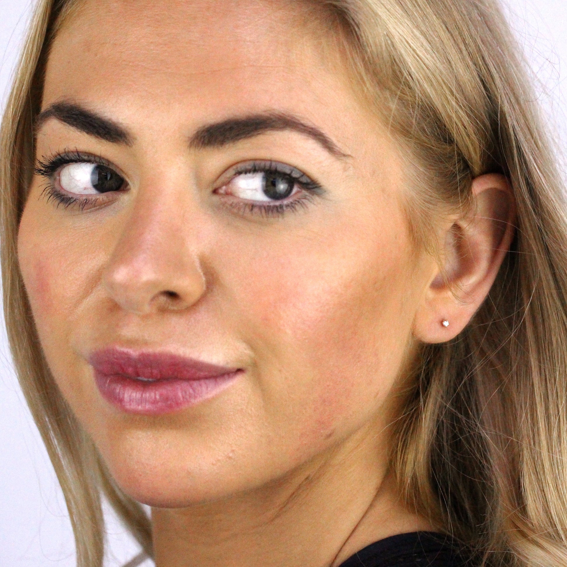 Rosévergoldet Sterlingsilber 2mm Rund CZ Kristall Ohrstecker