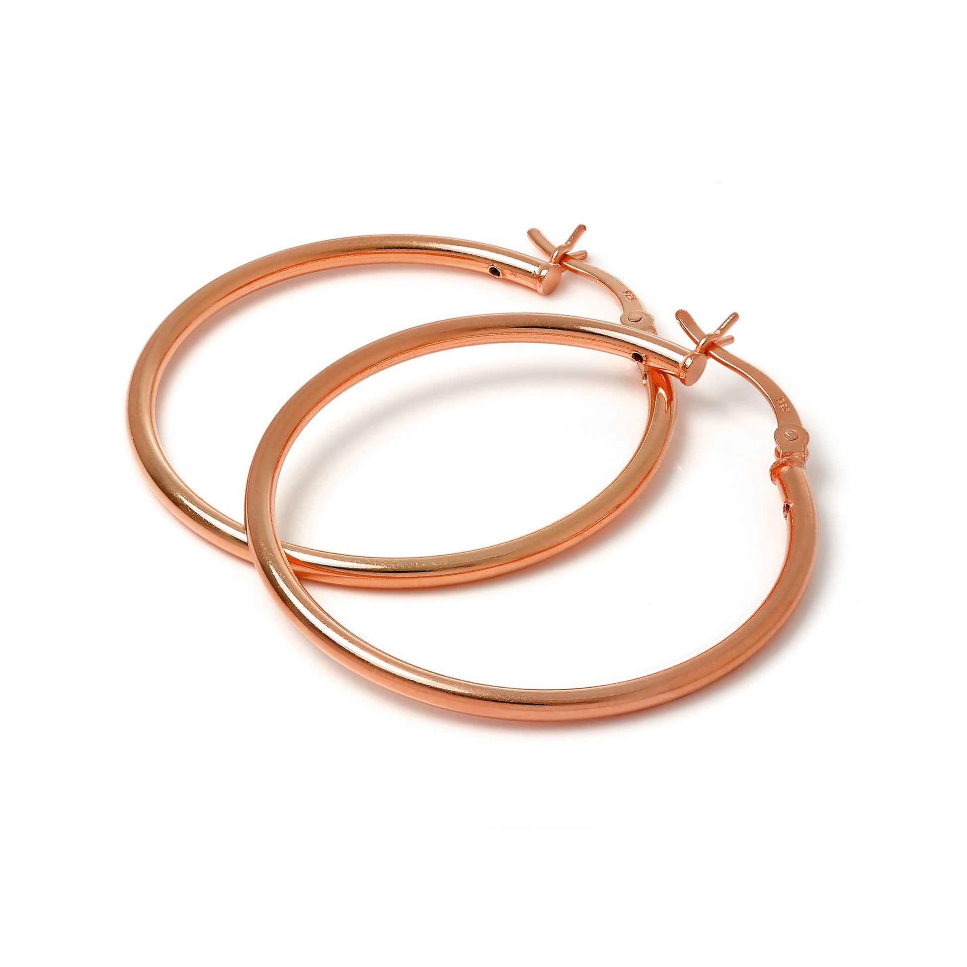 Rose vergoldetes Sterling Silber 2mm Röhrenohrringe 12mm - 70mm