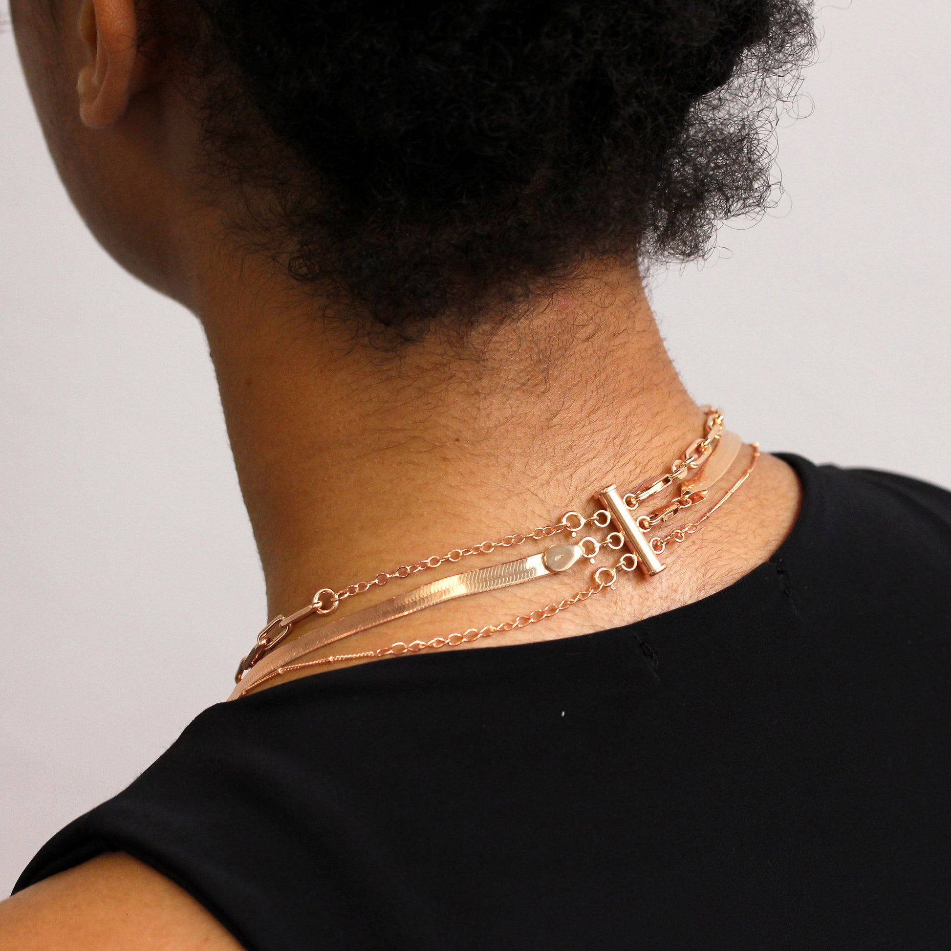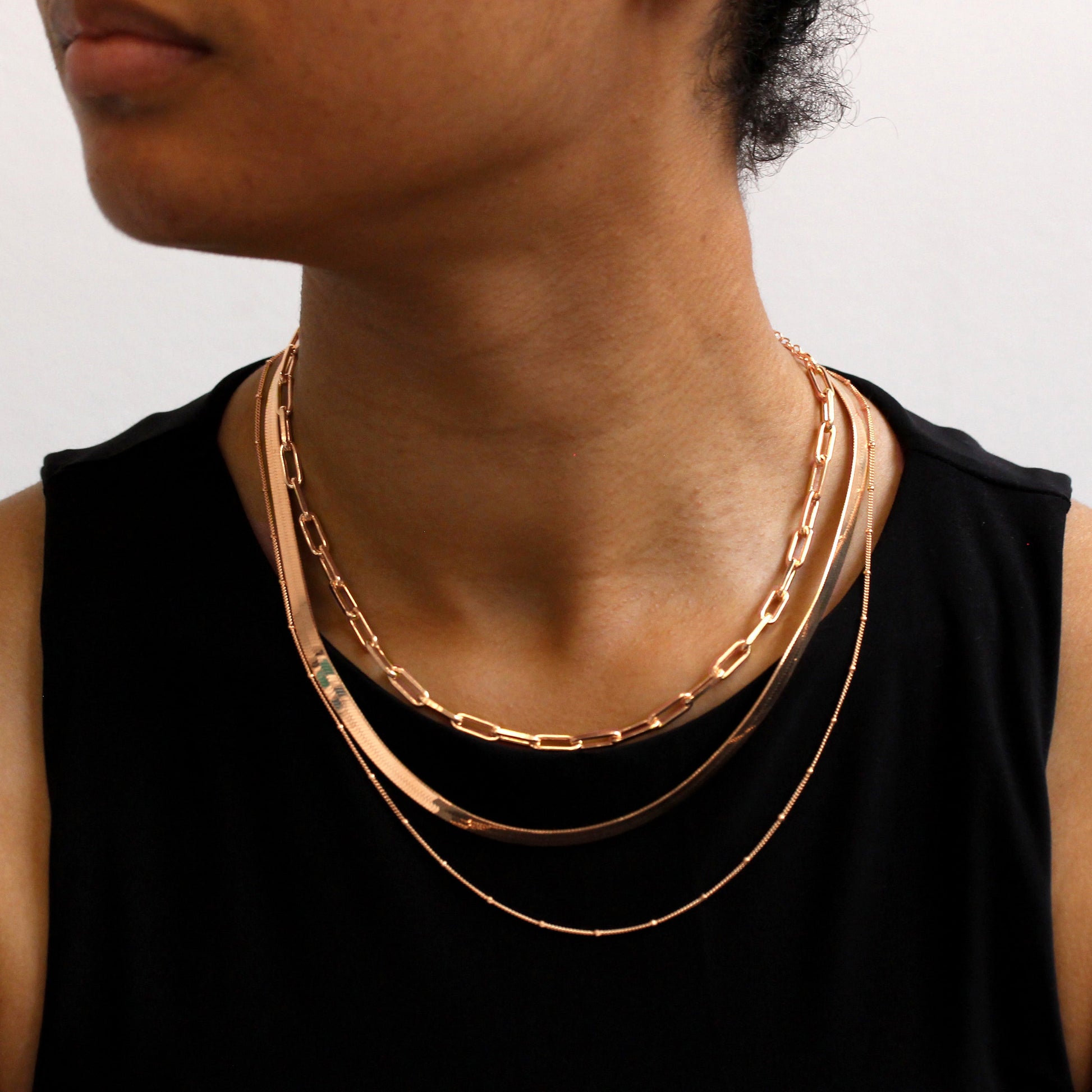 Rosévergoldet Sterlingsilber 3 - Reihig Überlagerungs Halskette Verschluss