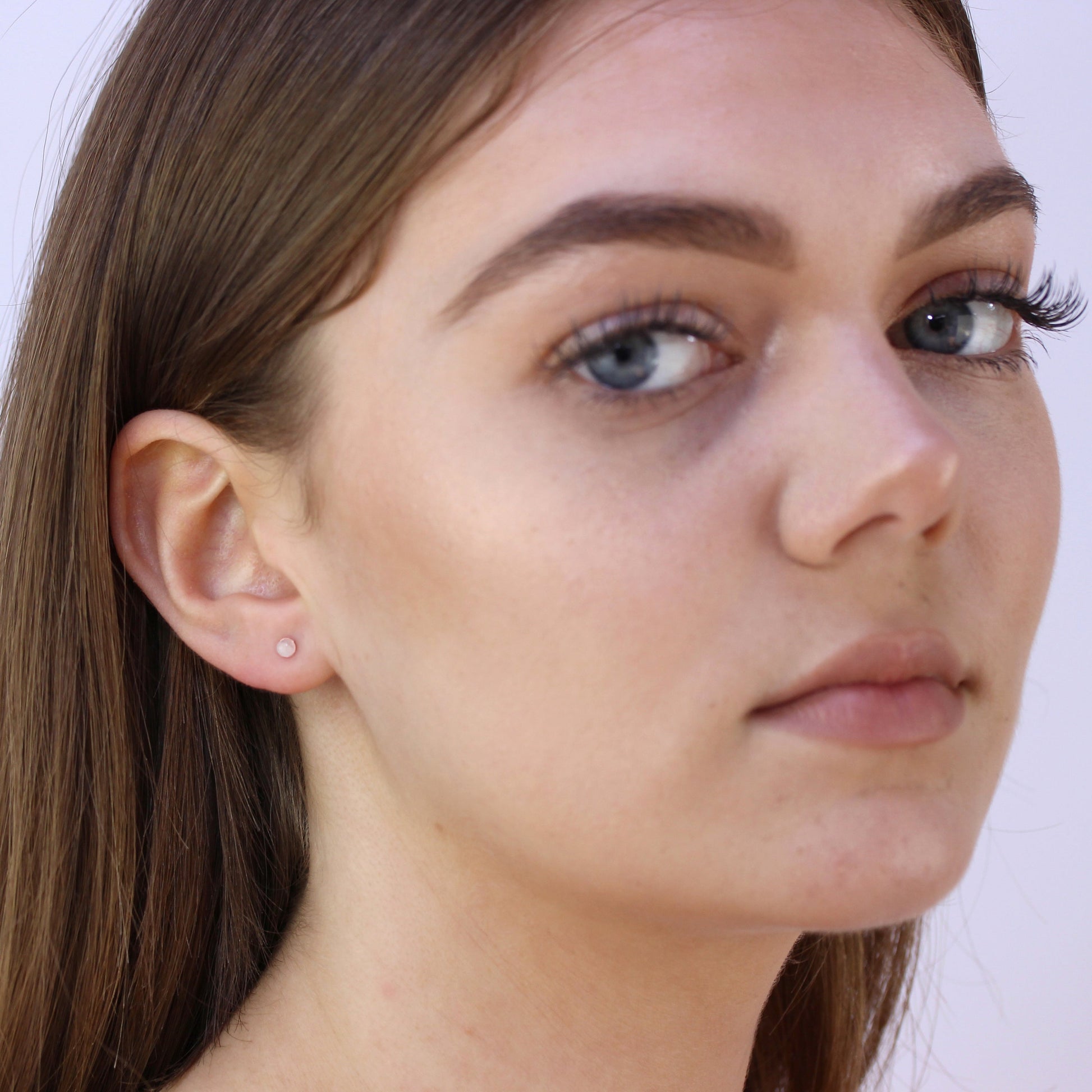 Rosévergoldet Sterlingsilber 3mm Mondstein Kugel Ohrstecker