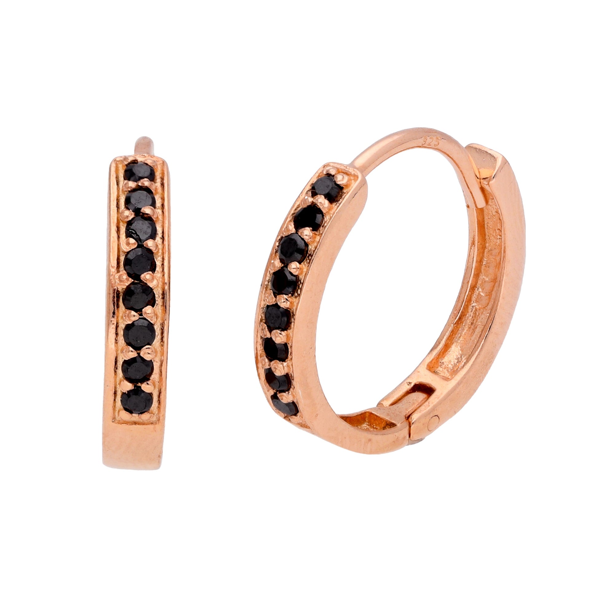 Rosévergoldet Sterlingsilber Schwarz CZ Klappcreolen Ohrringe