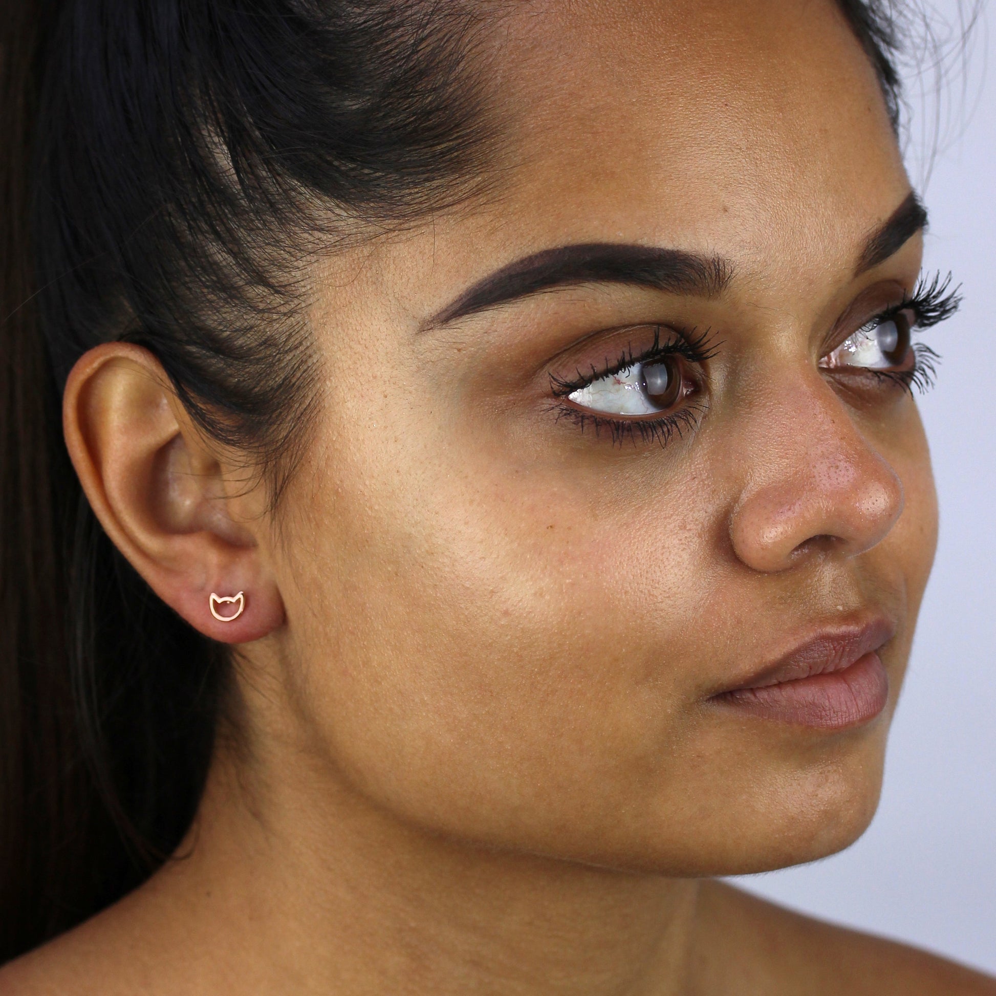 Rosévergoldet Sterlingsilber Katzenkopf Ohrstecker