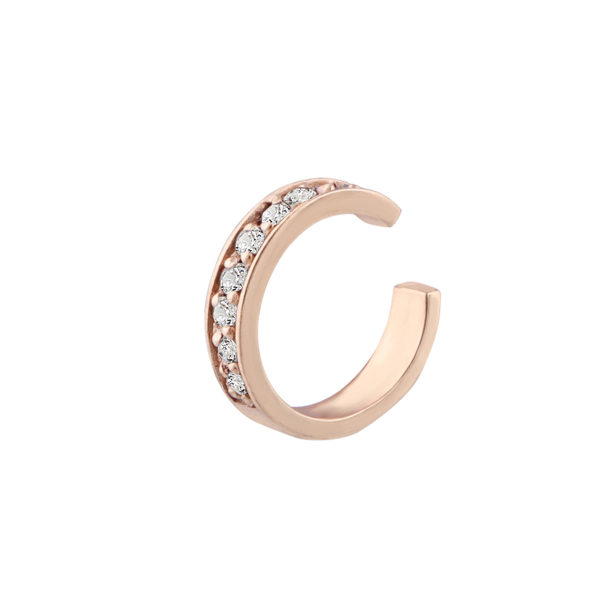 Rosévergoldet Sterlingsilber Klar CZ Pavé Fassung Manschetten Ohrring