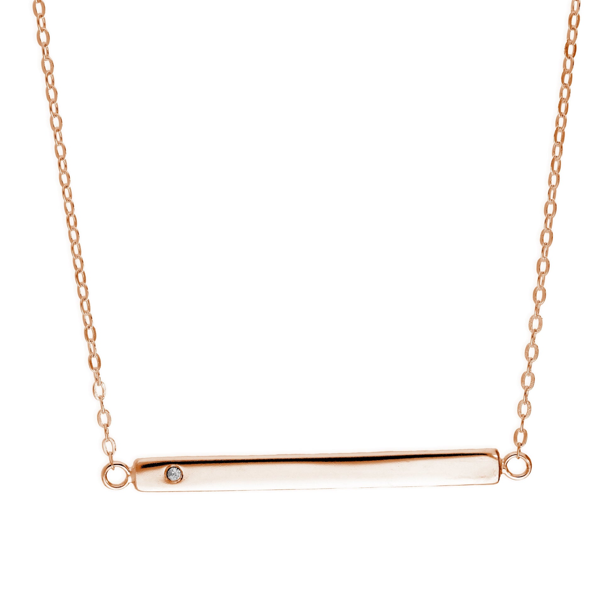 Rosévergoldet Sterlingsilber CZ Gravierbar Stange Halskette