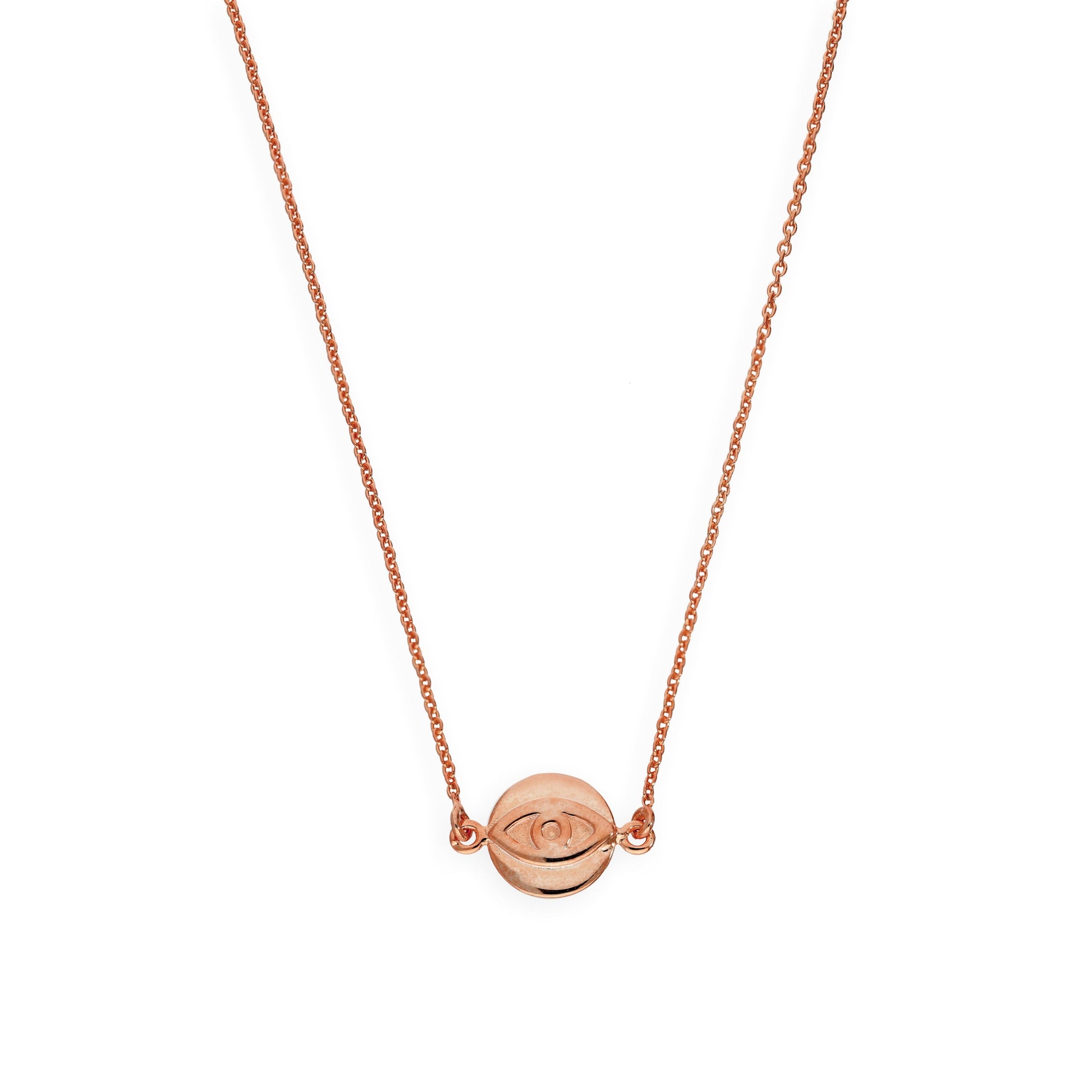 Rose vergoldet Sterling Silber Evil Eye Anhänger auf 18 Zoll Kette