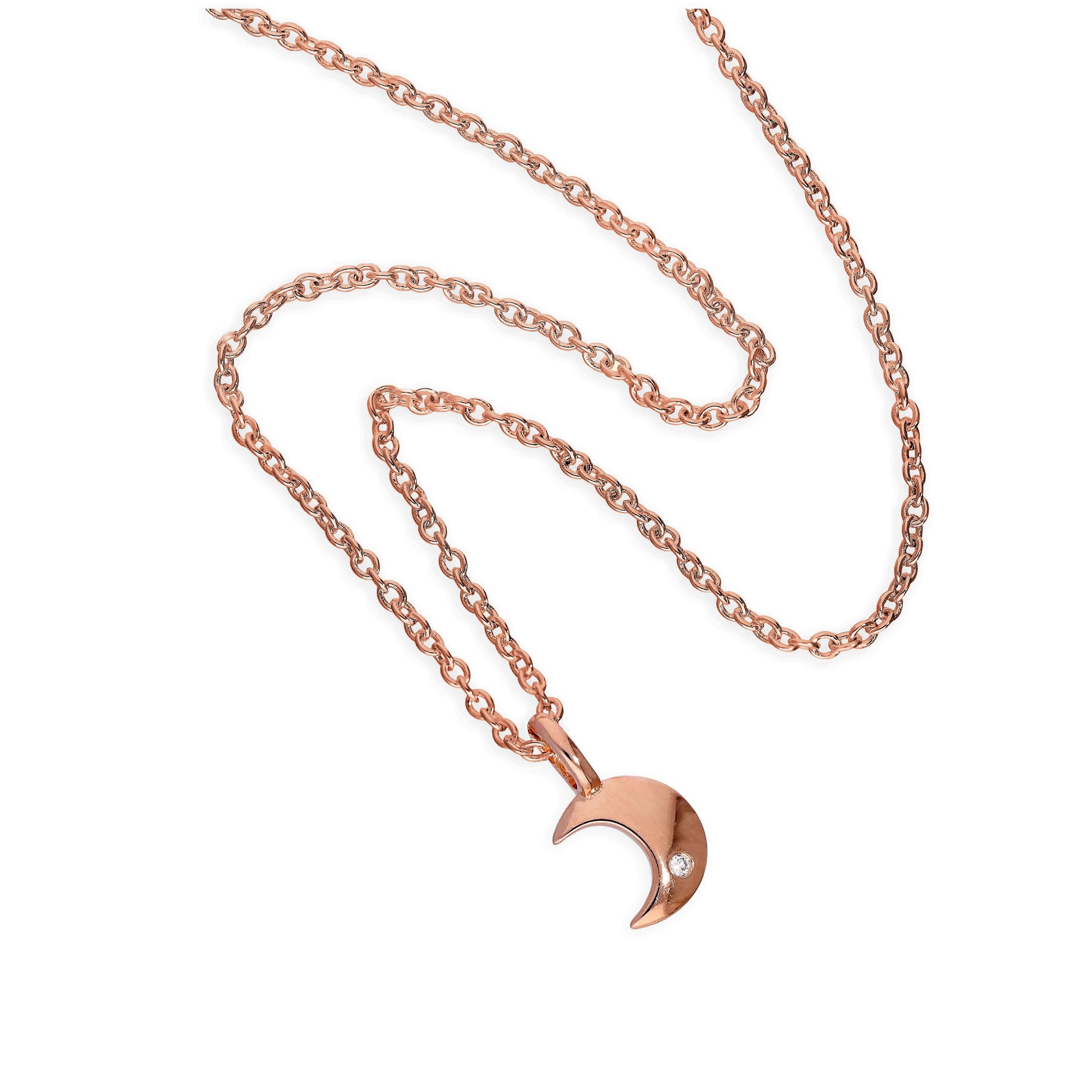 18-Zoll-Mond-Halskette aus vergoldetem Sterling-Silber und echten Diamanten