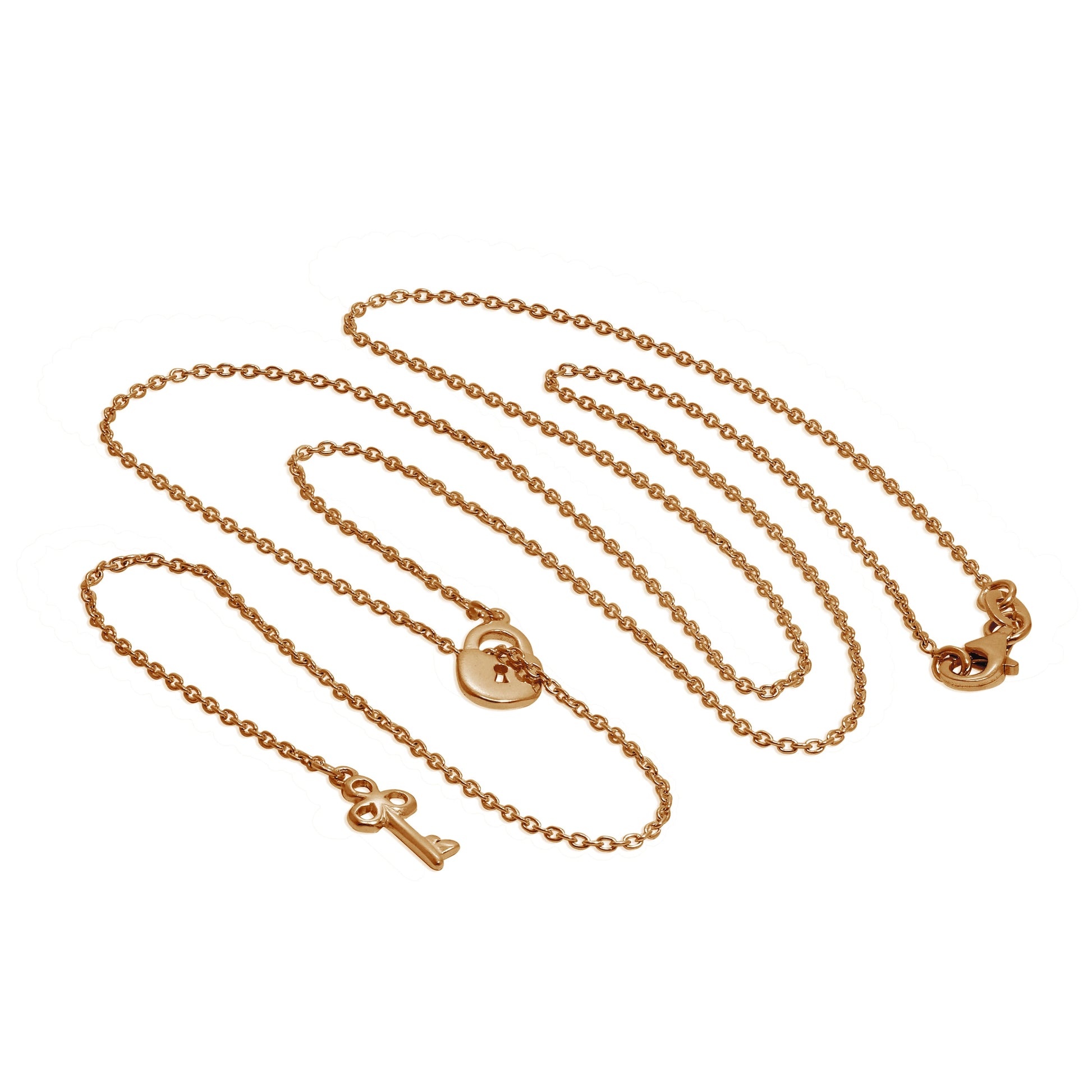 Rosévergoldet Sterlingsilber Schlüssel Vorhängeschloss Hänge Halskette