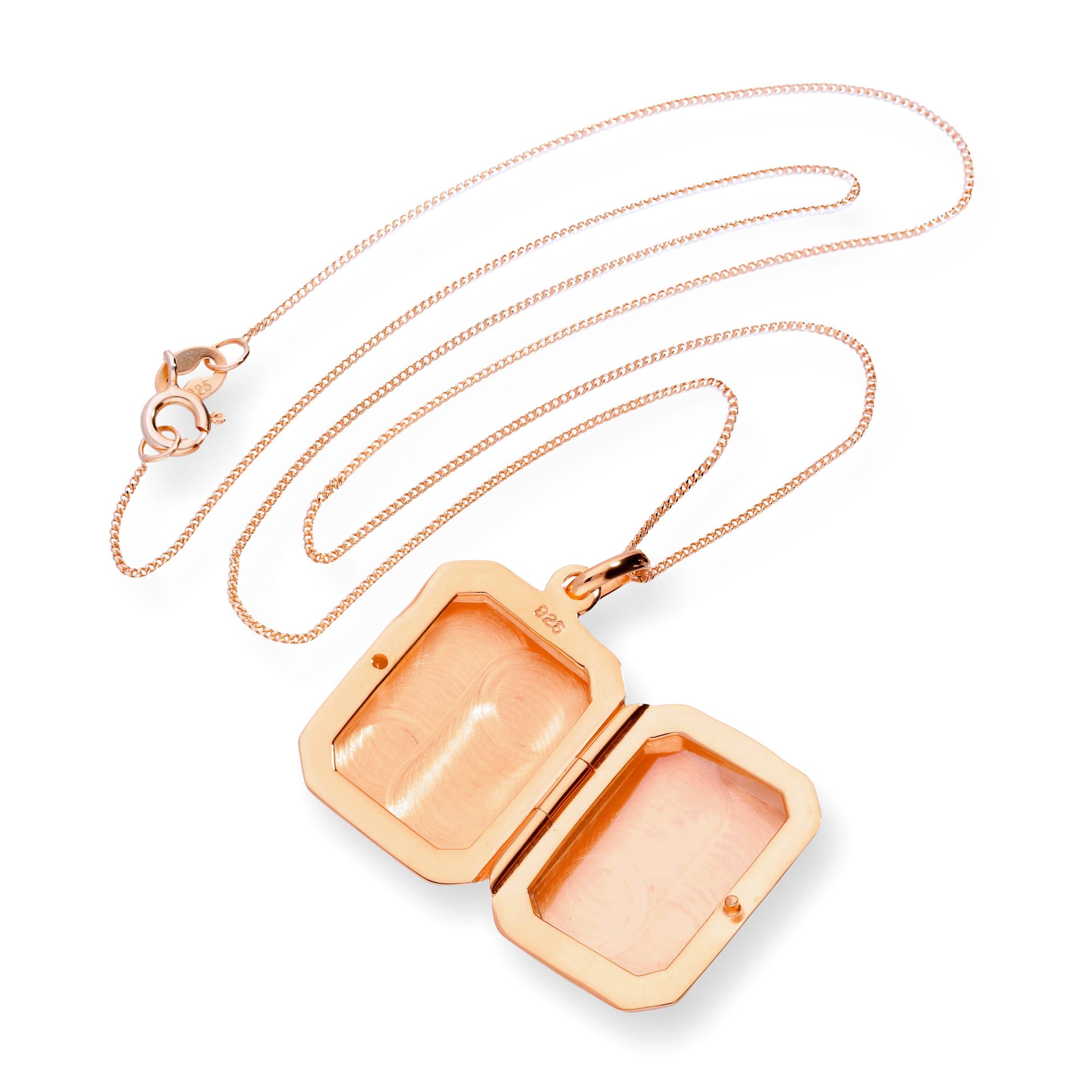 Roségoldbeschichtetes, graviertes, achteckiges Medaillon aus Sterlingsilber, 16–22 Zoll