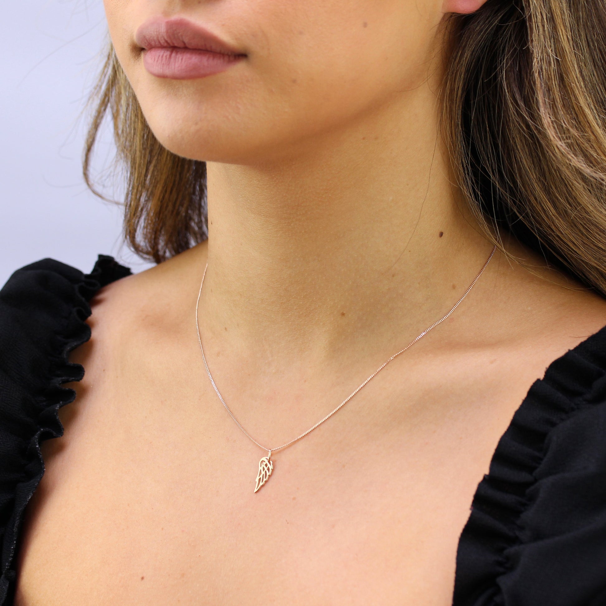 Roségold-vergoldete Halskette aus Sterlingsilber mit offenen Engelsflügeln 14–32 Zoll