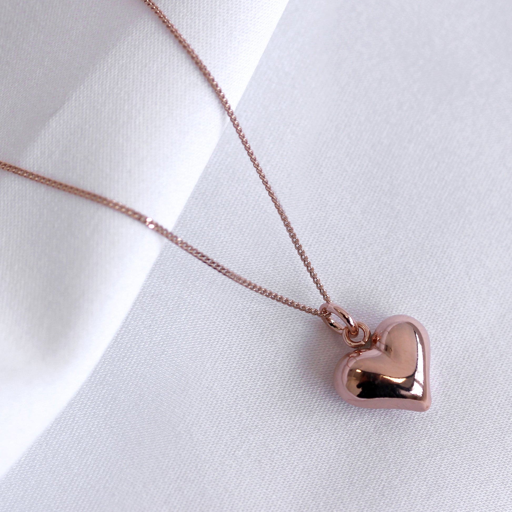 Roségoldplattierte Sterling Silberkette mit aufgeblasenem Herz 14 - 32 Zoll