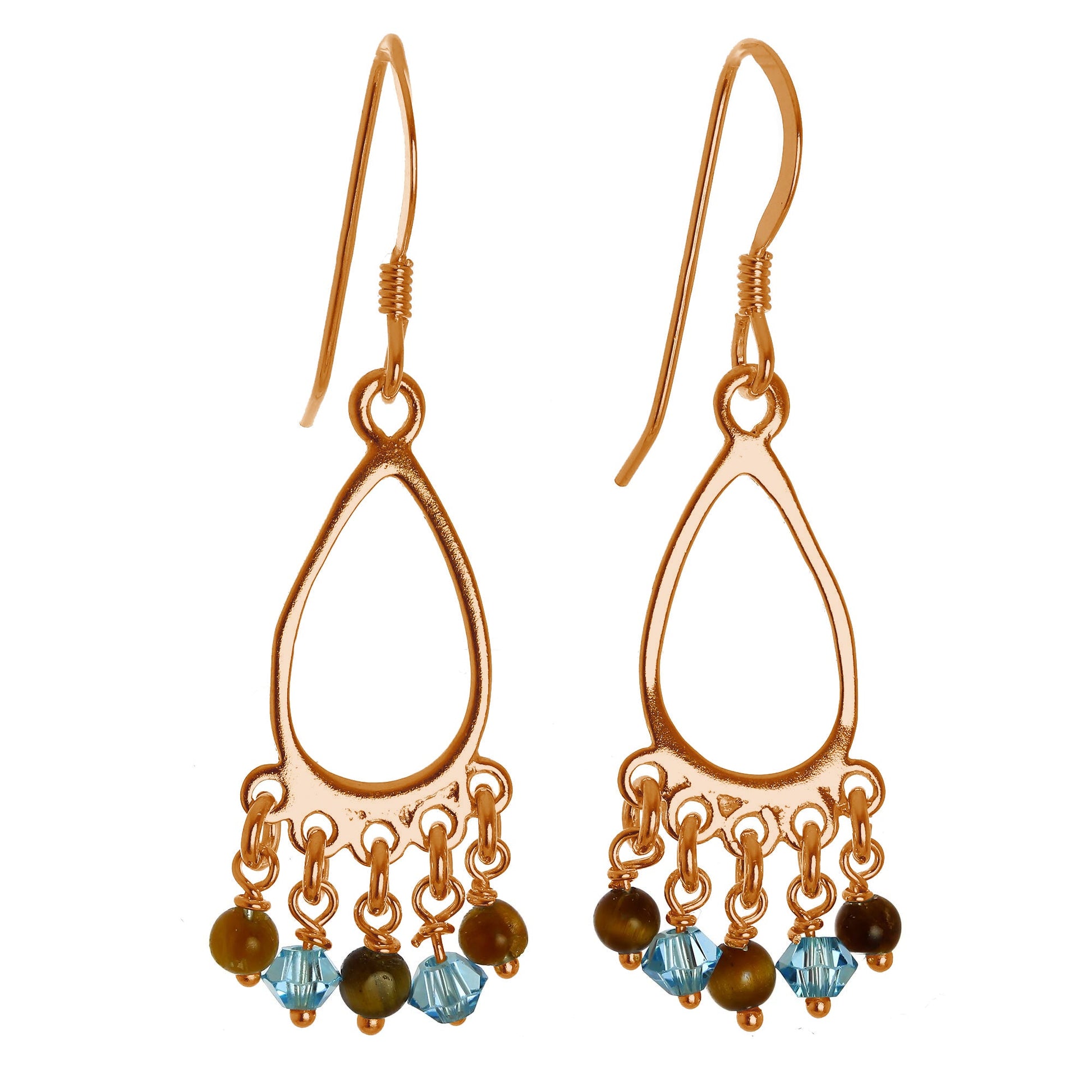 Rosévergoldet Sterlingsilber & Tigerauge Kronleuchter Ohrringe