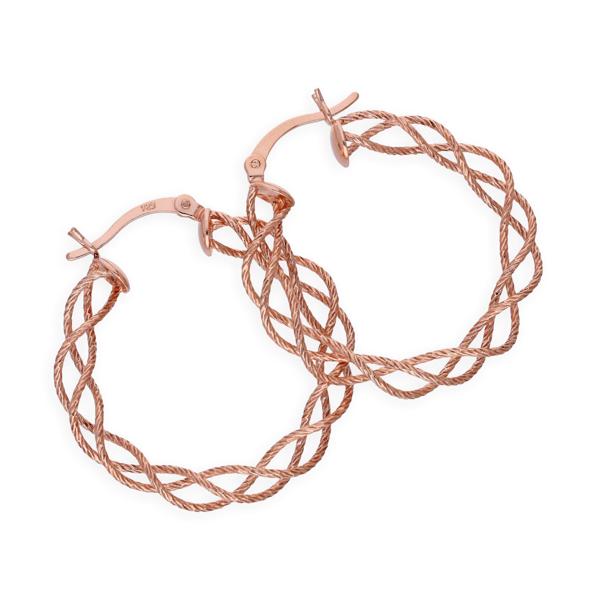 Rosévergoldet Sterlingsilber Geflochten Creolen Ohrringe