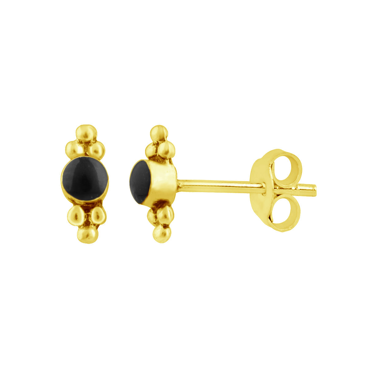 Klein Vergoldet Sterlingsilber Kügelchen Schwarz Ohrstecker
