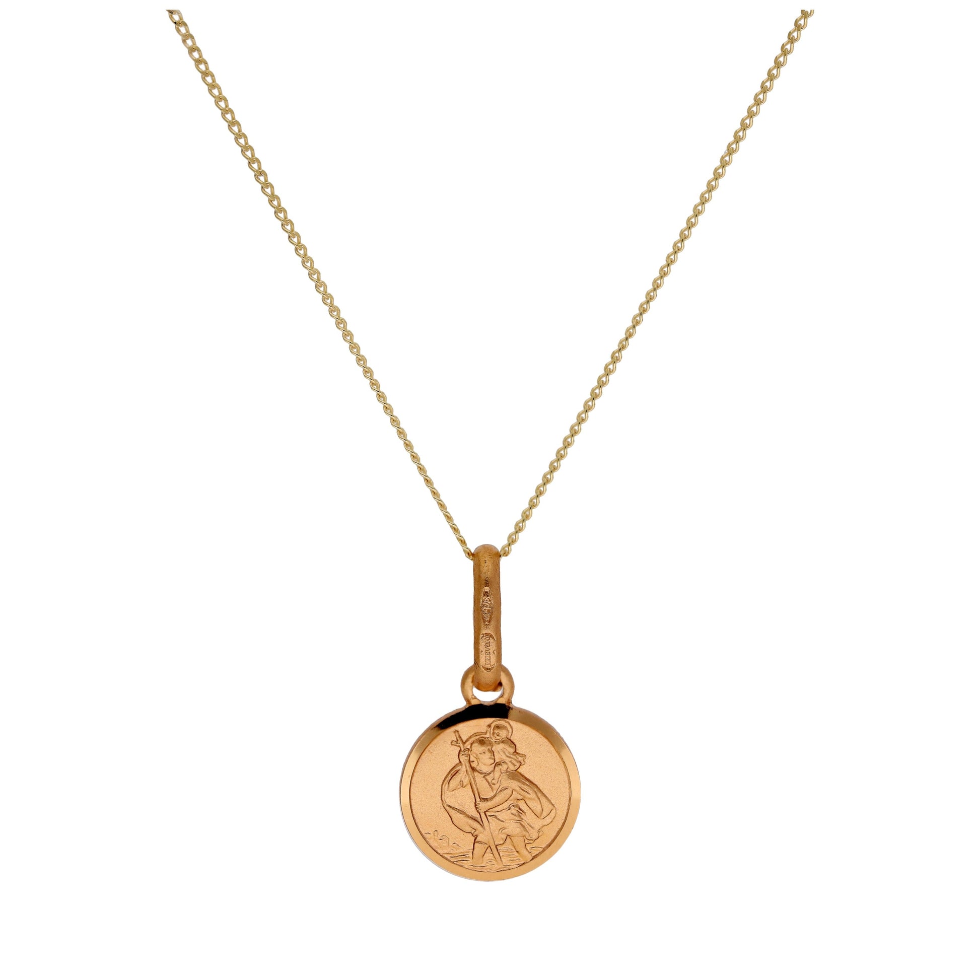 Kleine runde 9 Karat Gold St. Christopher Halskette 16–22 Zoll
