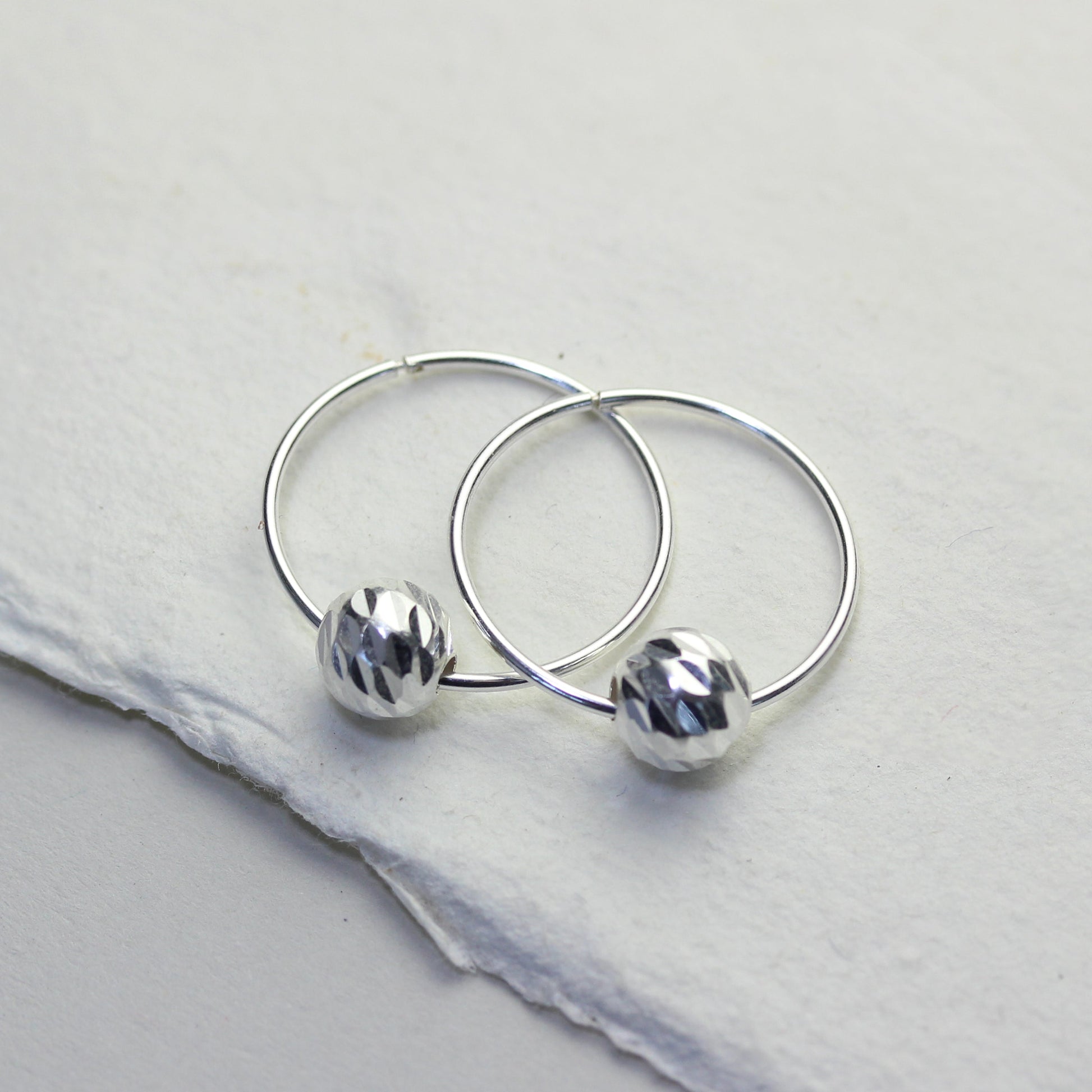 Sterlingsilber 18mm Creolen Ohrringe mit Diamantschliff Kugel Anhängern