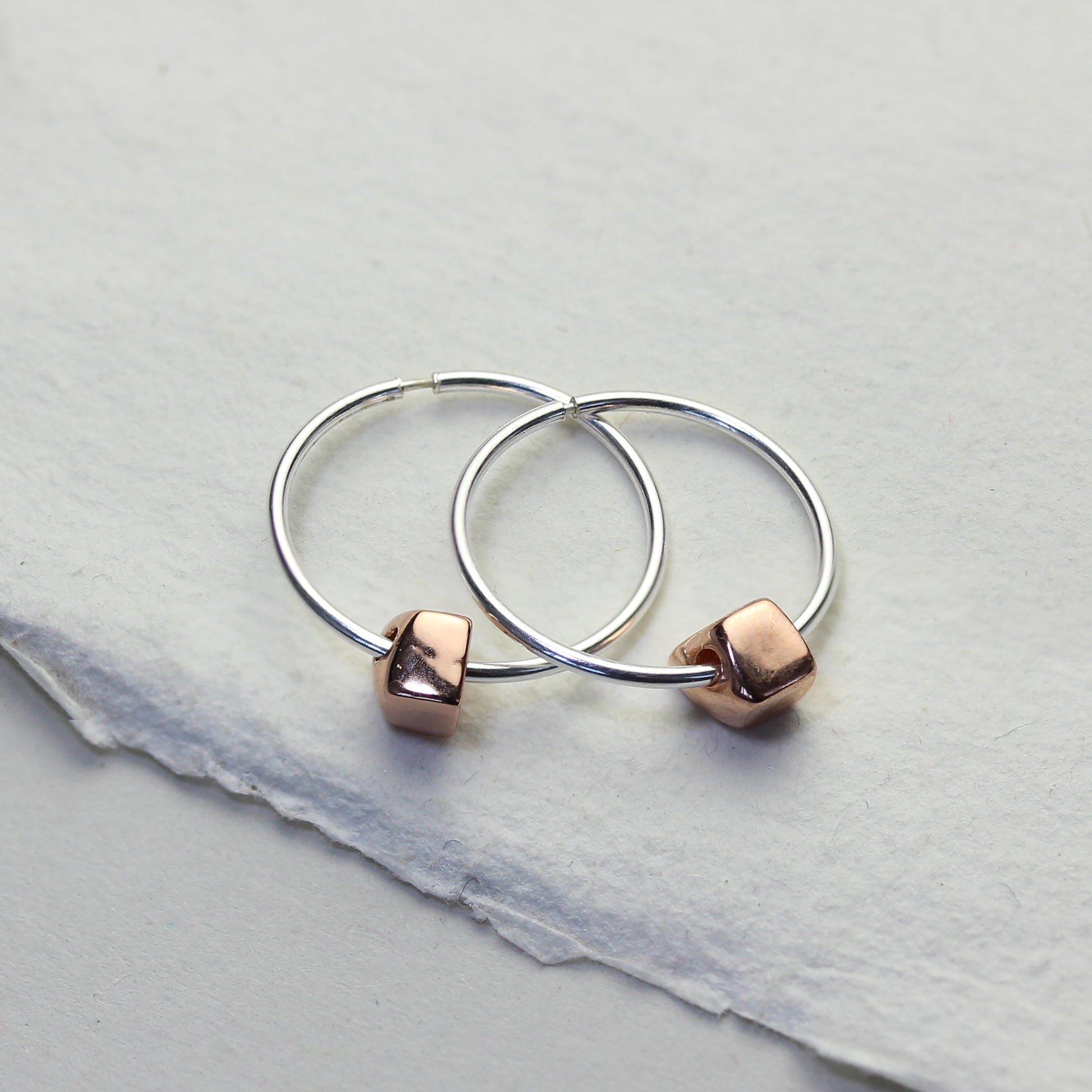 Sterlingsilber 18mm Creolen Ohrringe mit Rosévergoldet Anhängern