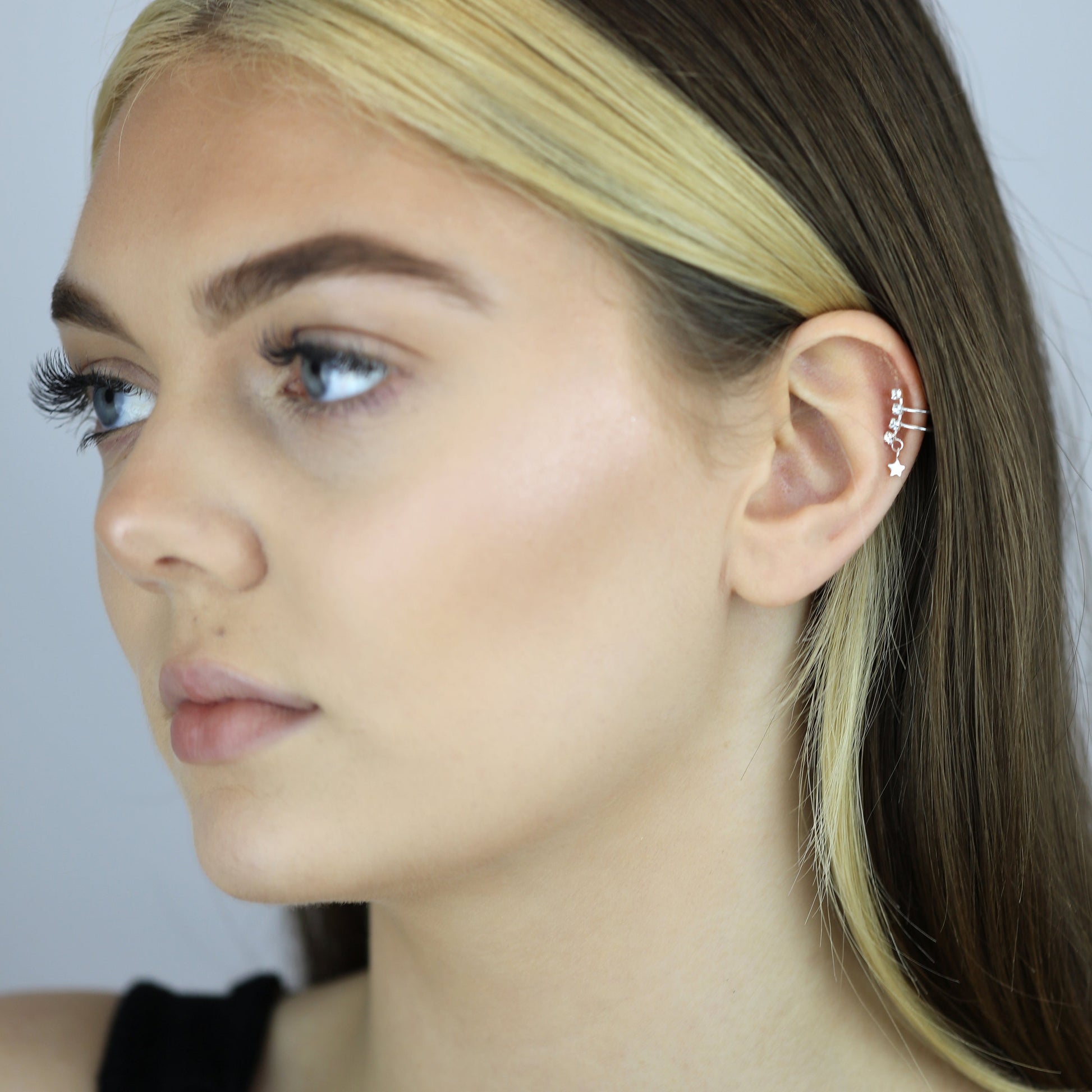 Sterlingsilber CZ Kristall Stern Baumel Manschetten Ohrringe