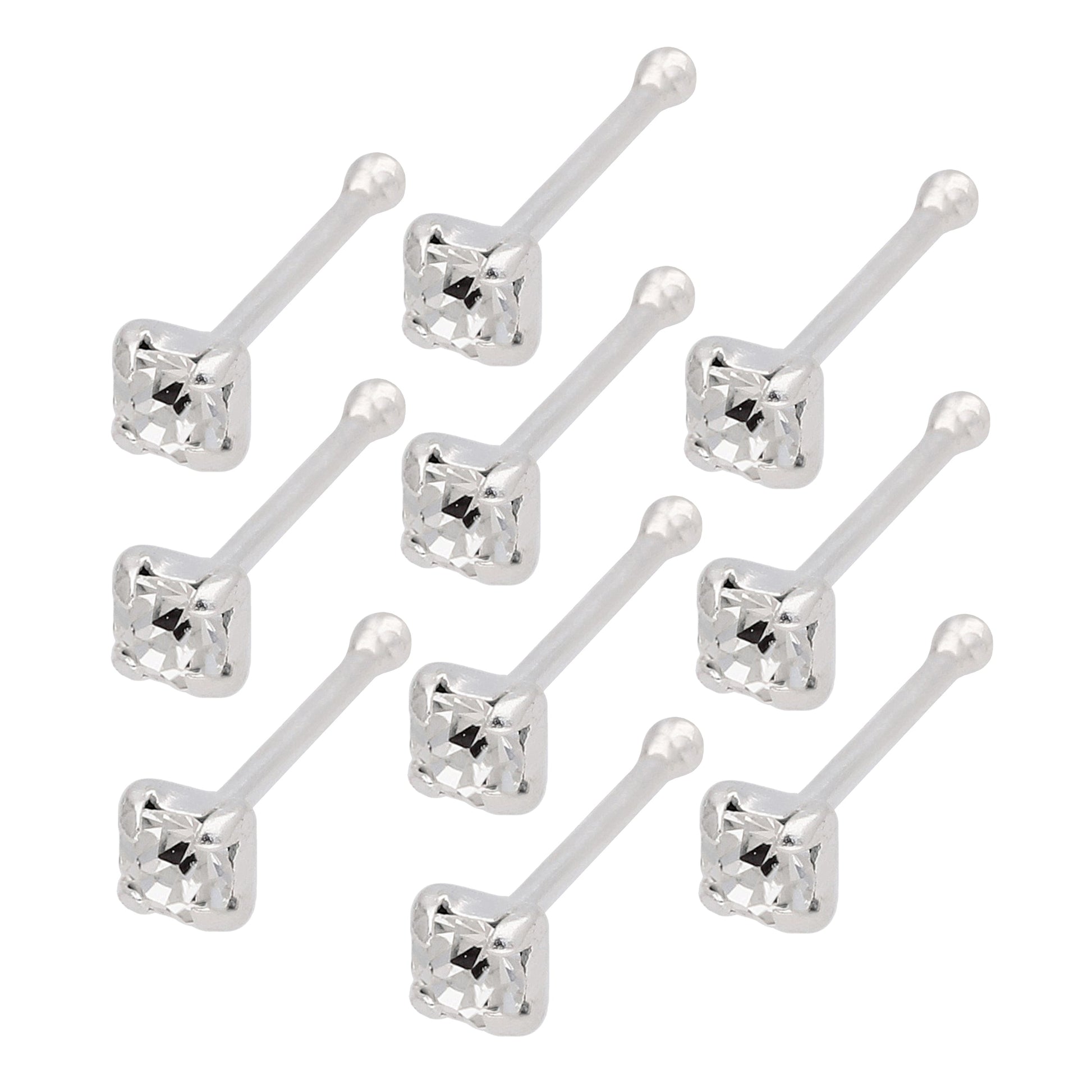 Sterlingsilber 2mm CZ 23Ga Nasenstecker Kugelende Satz von 10