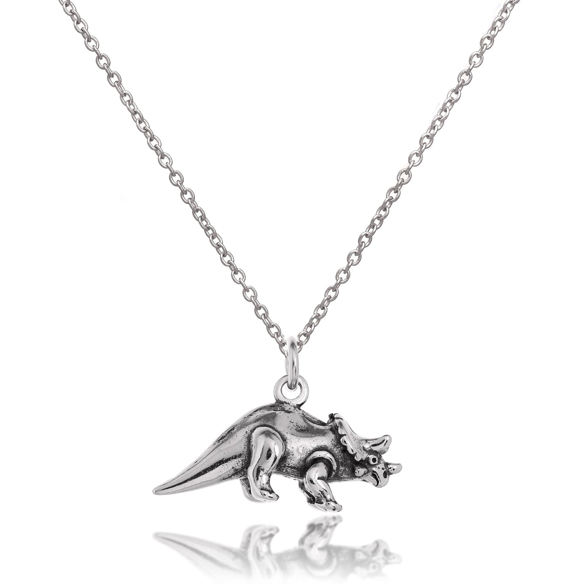 Halskette aus Sterlingsilber mit 3D-Triceratops-Dinosaurier