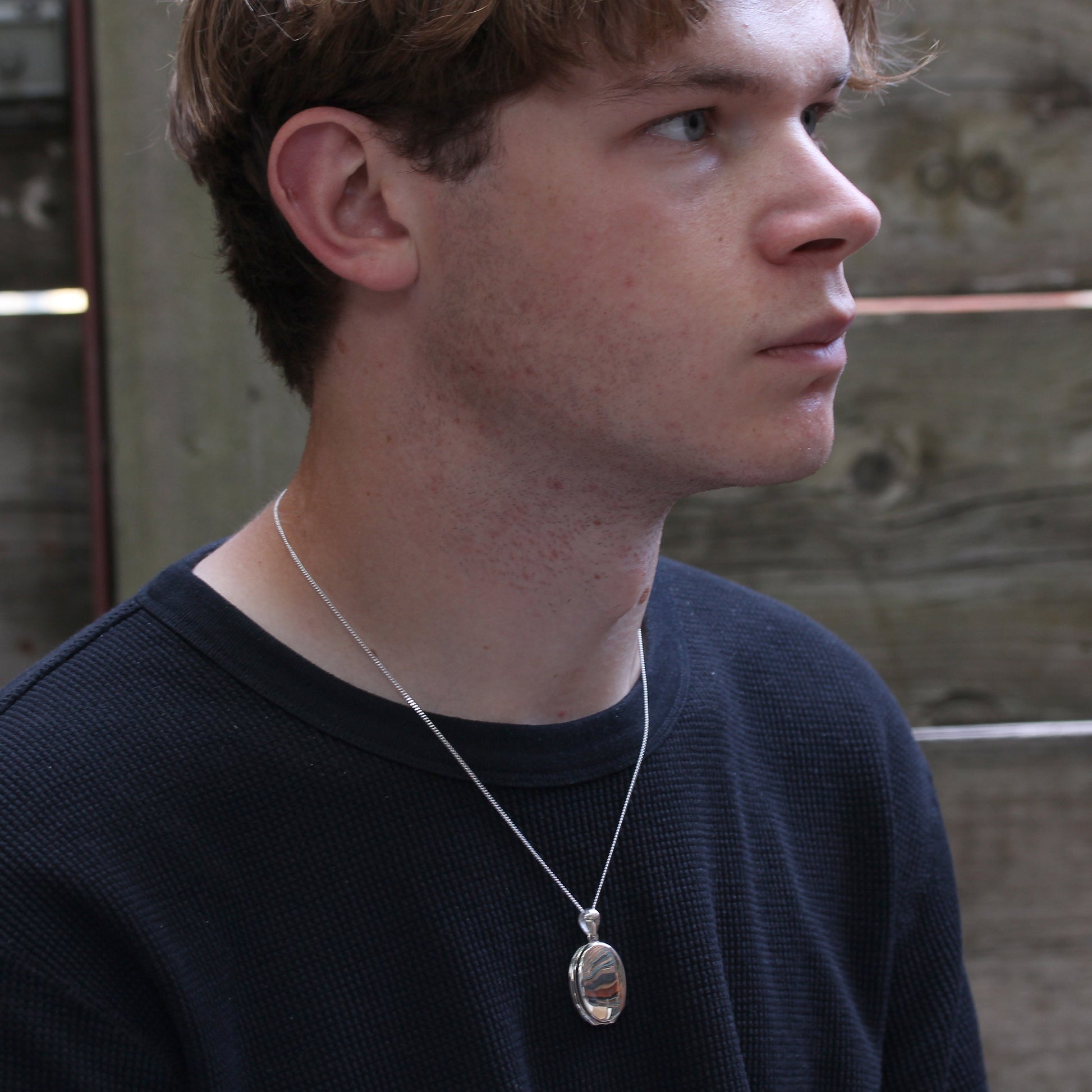 Sterling Silber 4 Foto Ovales Familienmedaillon an einer Kette 16 - 24 Zoll