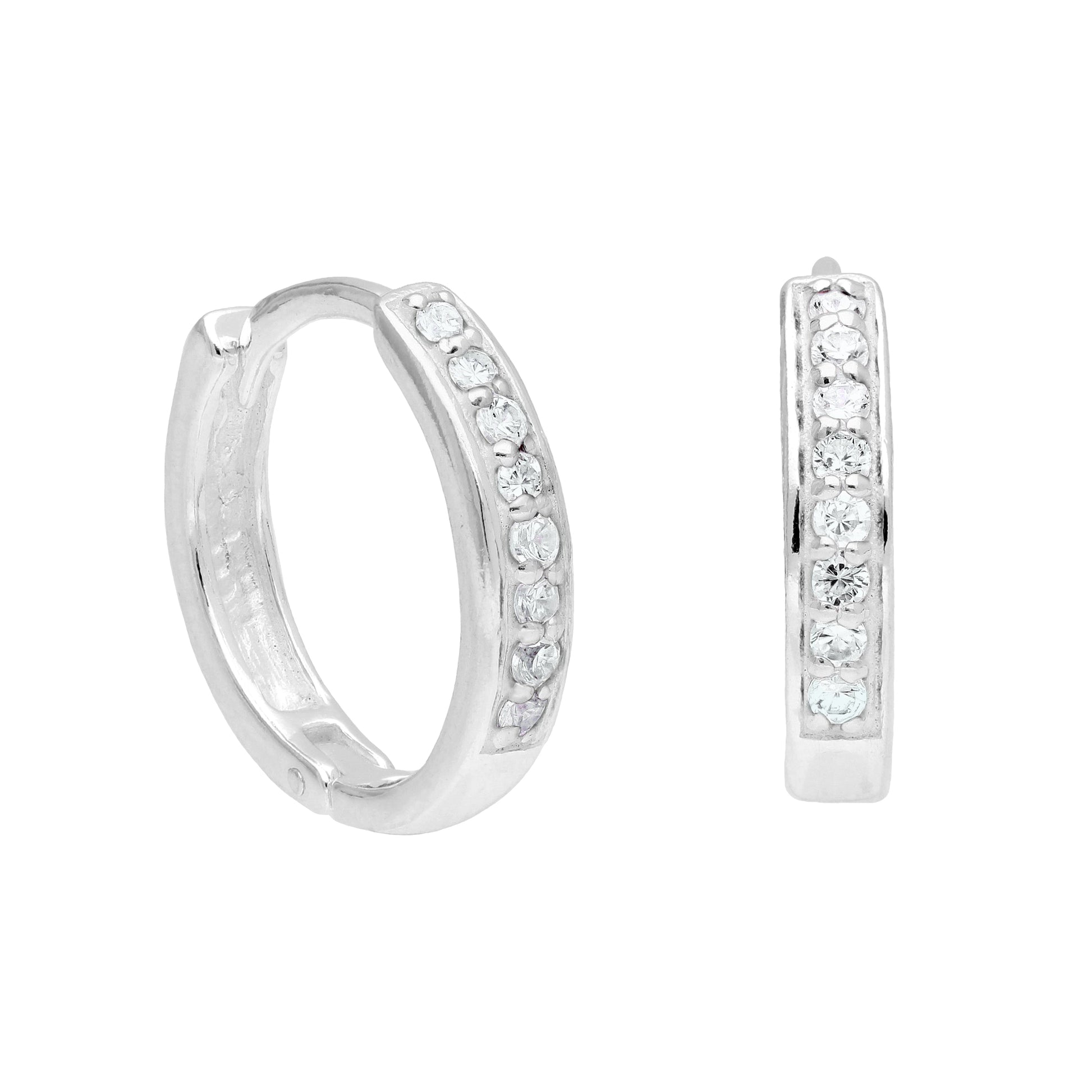 Sterlingsilber Aquamarin CZ Pavé Fassung 15mm Klappcreolen Ohrringe