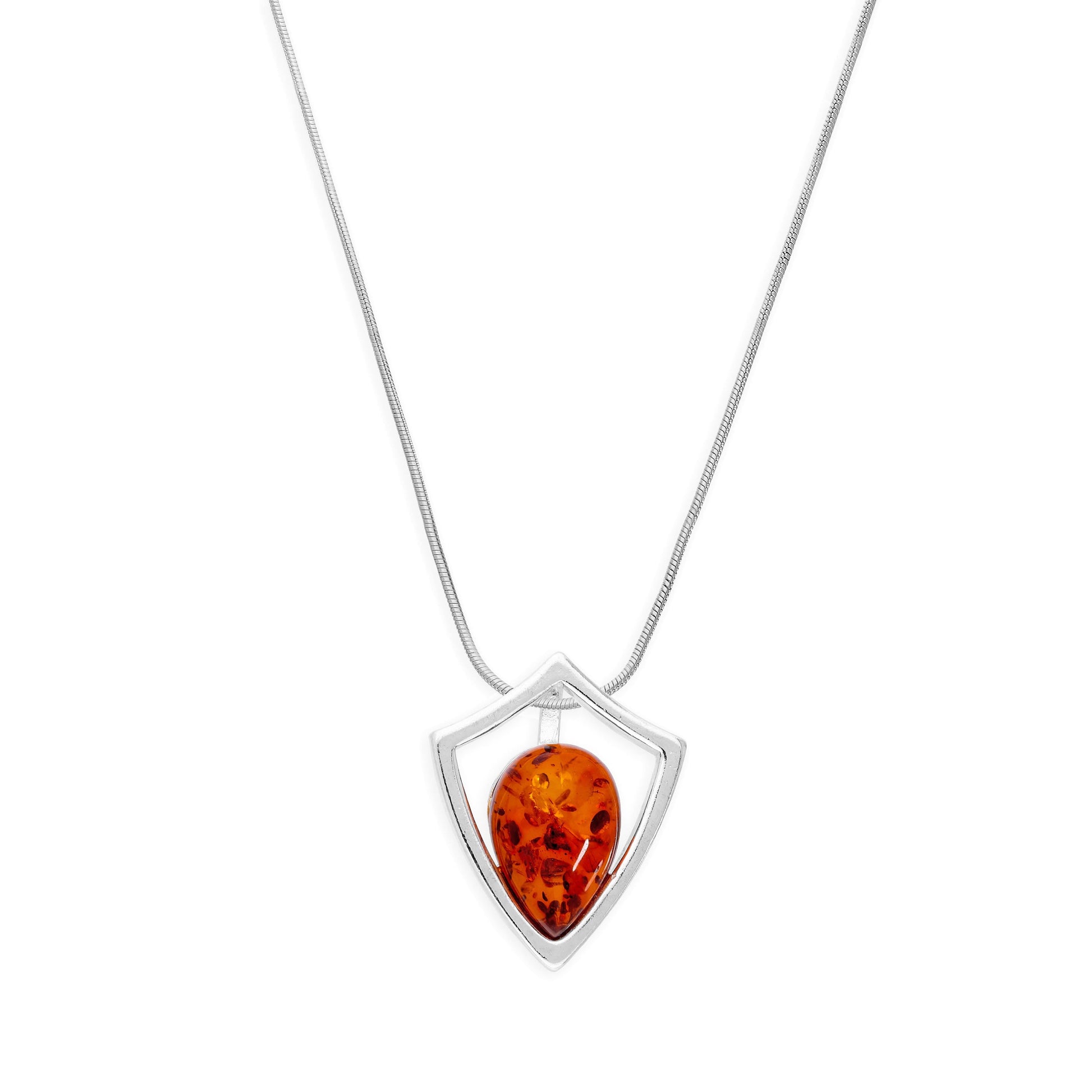 Halskette mit Anhänger aus Sterlingsilber und baltischem Bernstein in Schildform, 14–22 Zoll