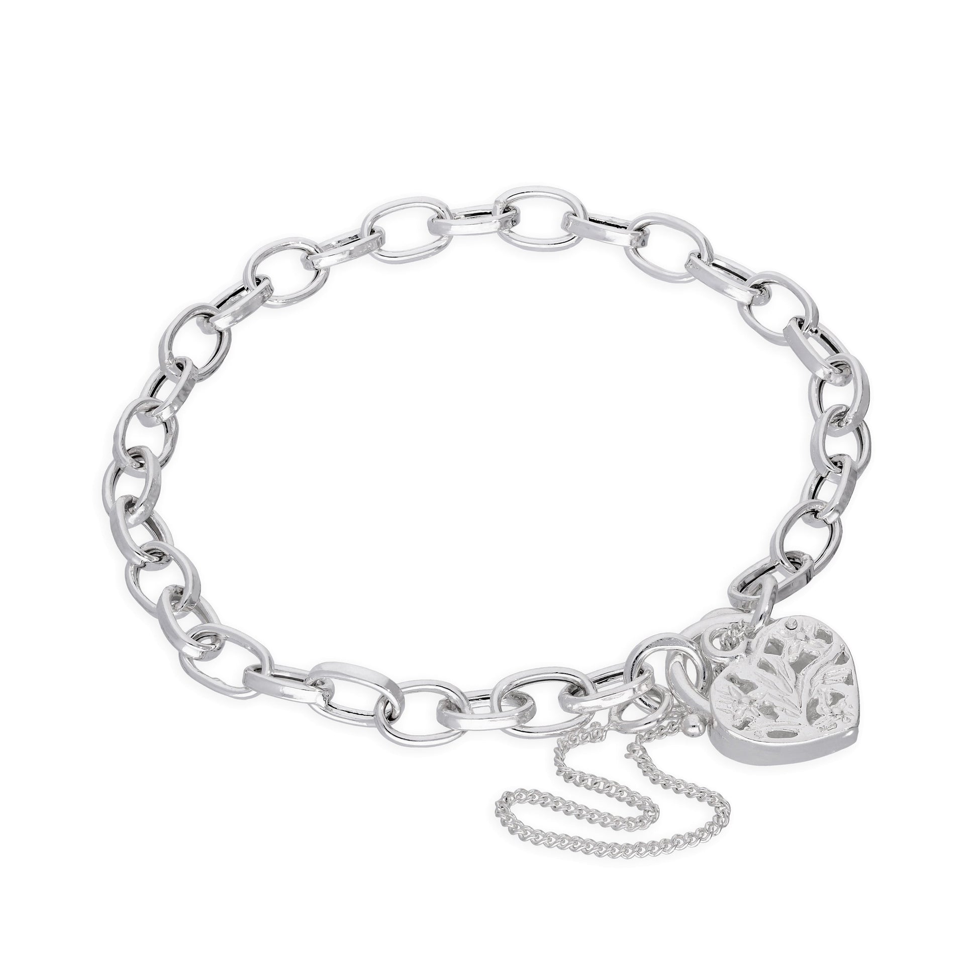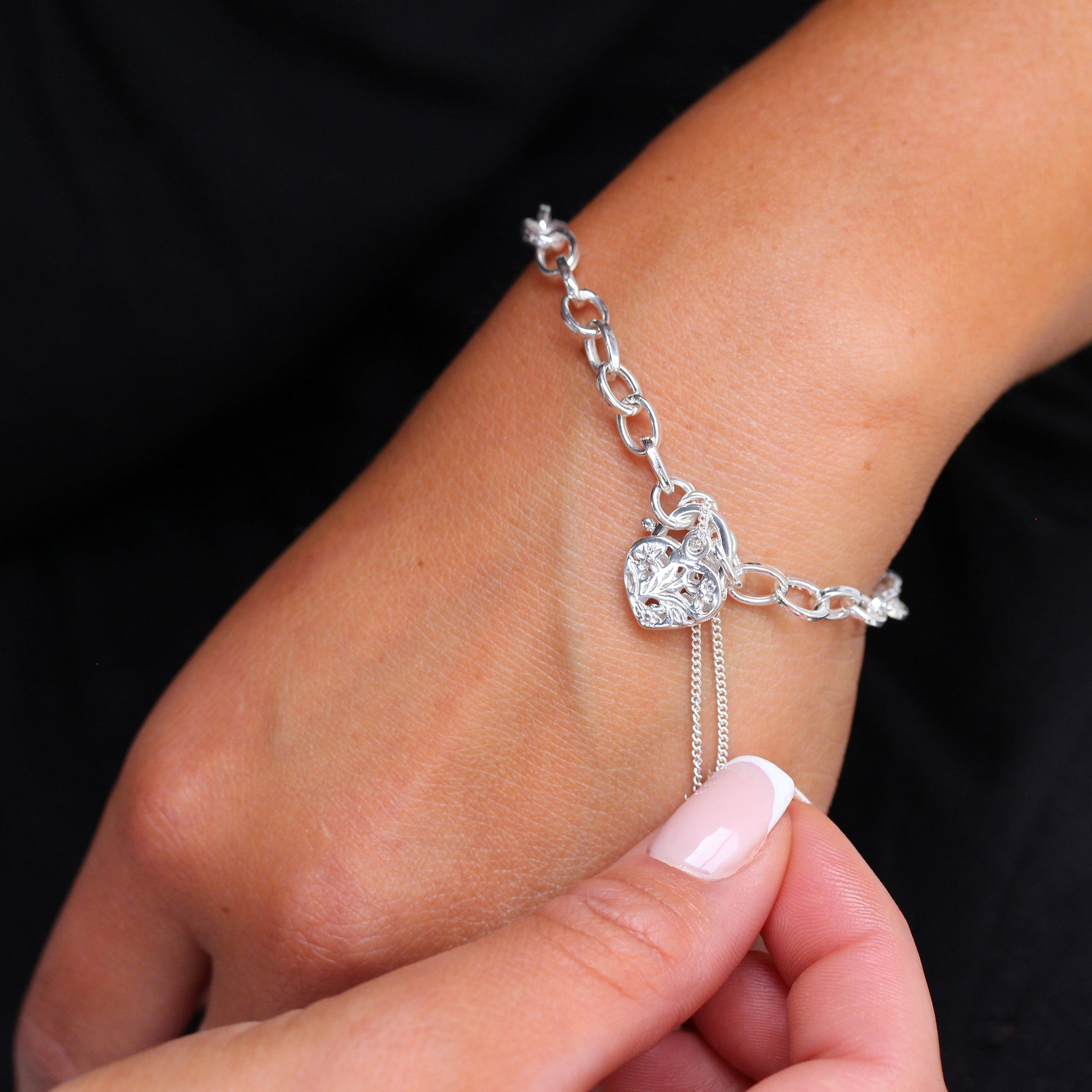Sterling Silber Belcher Kettenarmband mit Herz Vorhängeschloss 6 Zoll - 8 Zoll
