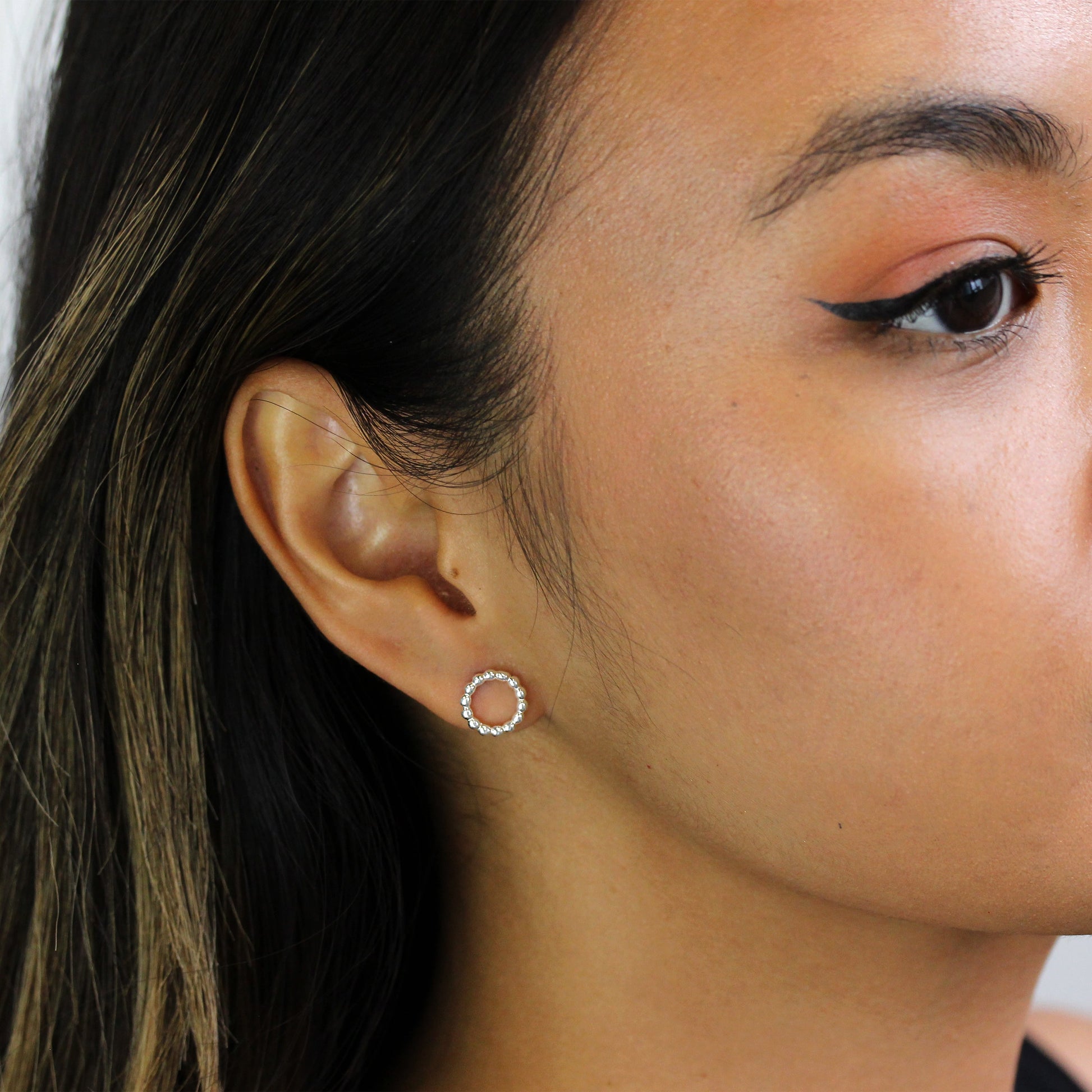 Sterlingsilber Pompon Kugeln Karma Kreis Ohrstecker