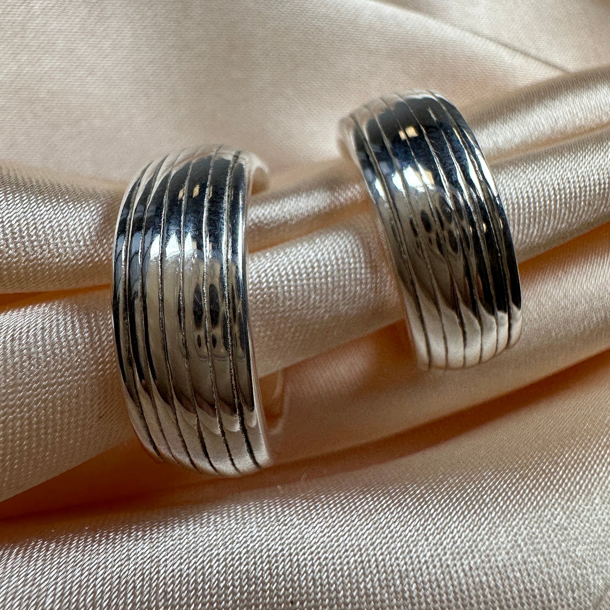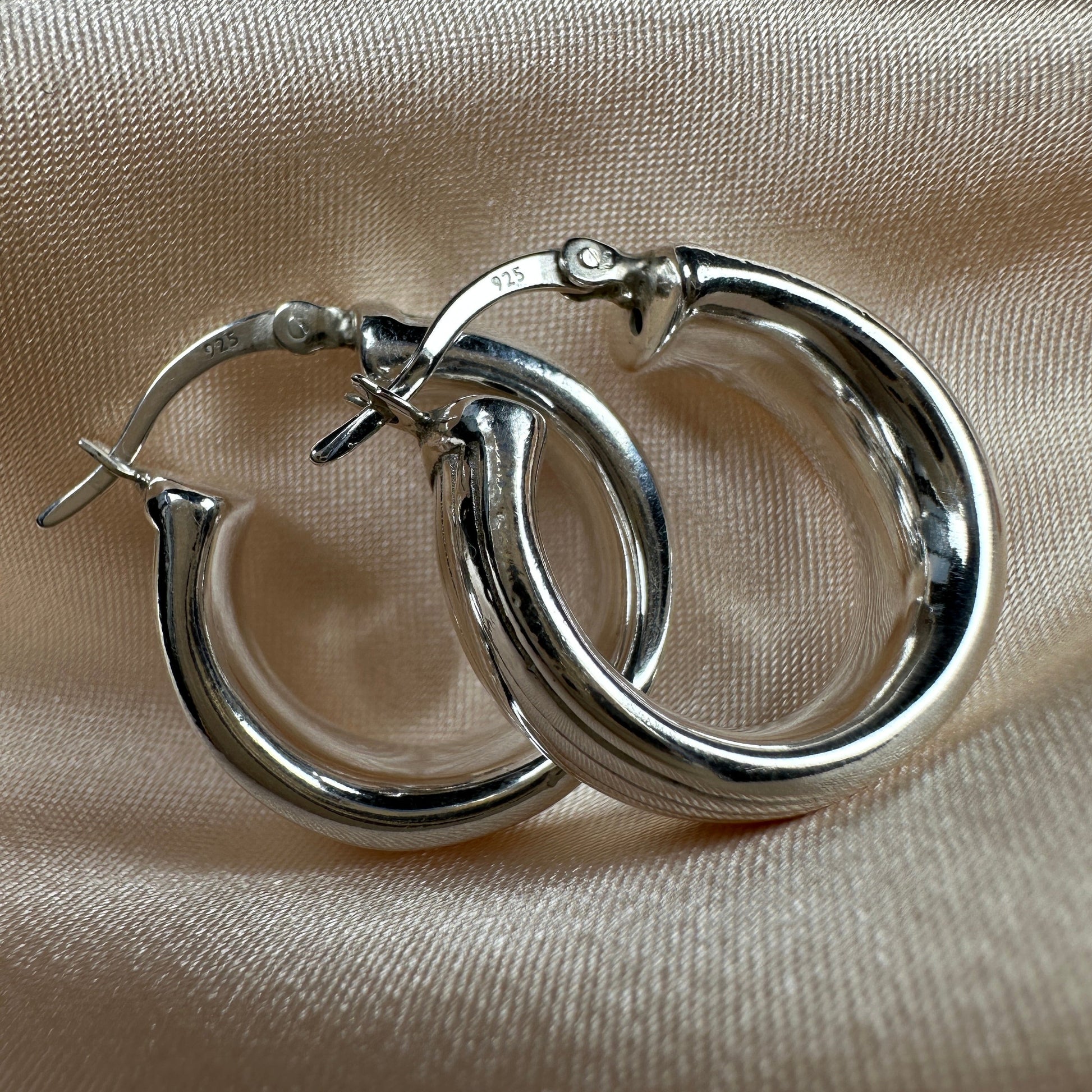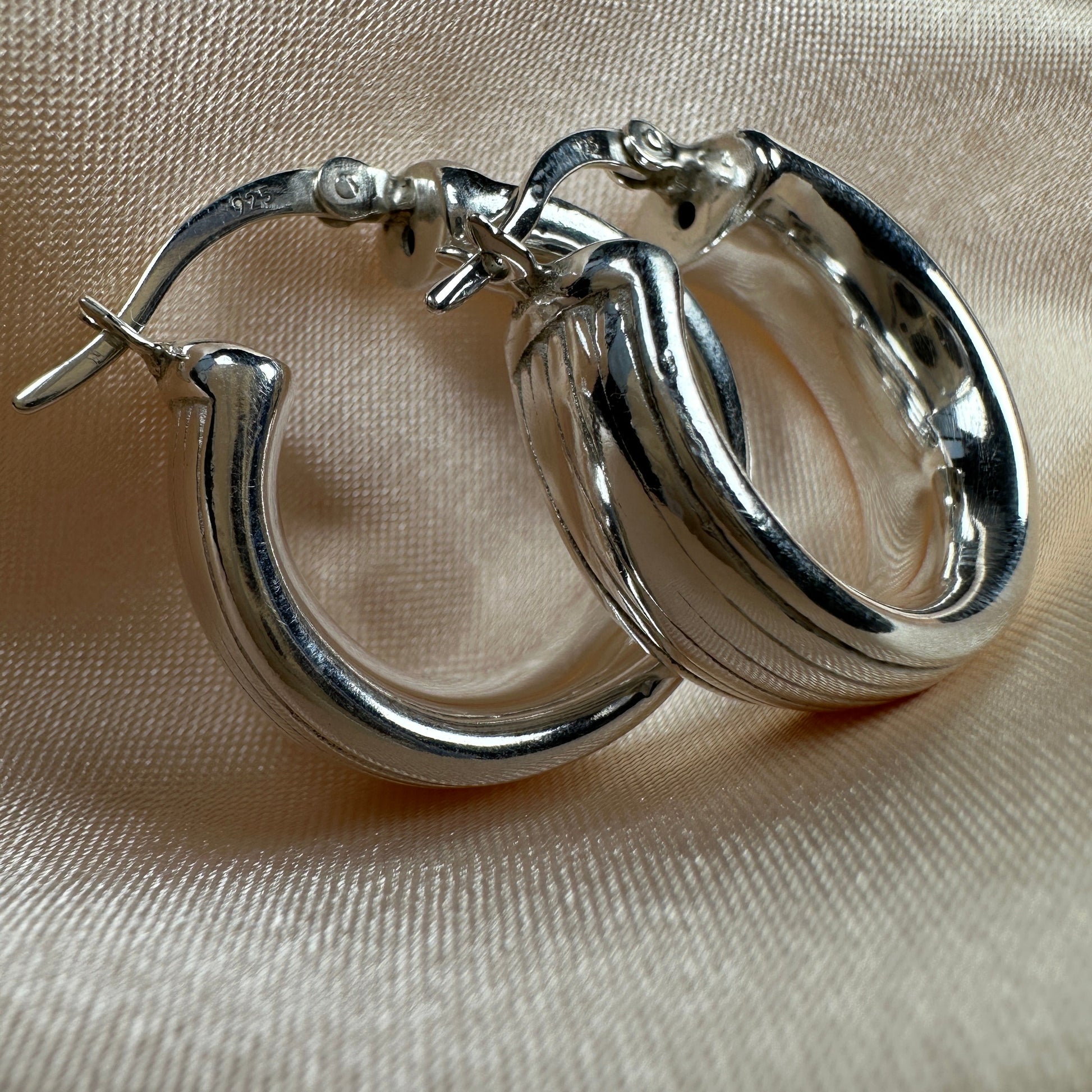 Sterlingsilber Klobig Hohl Liniert 20mm Creolen Ohrringe