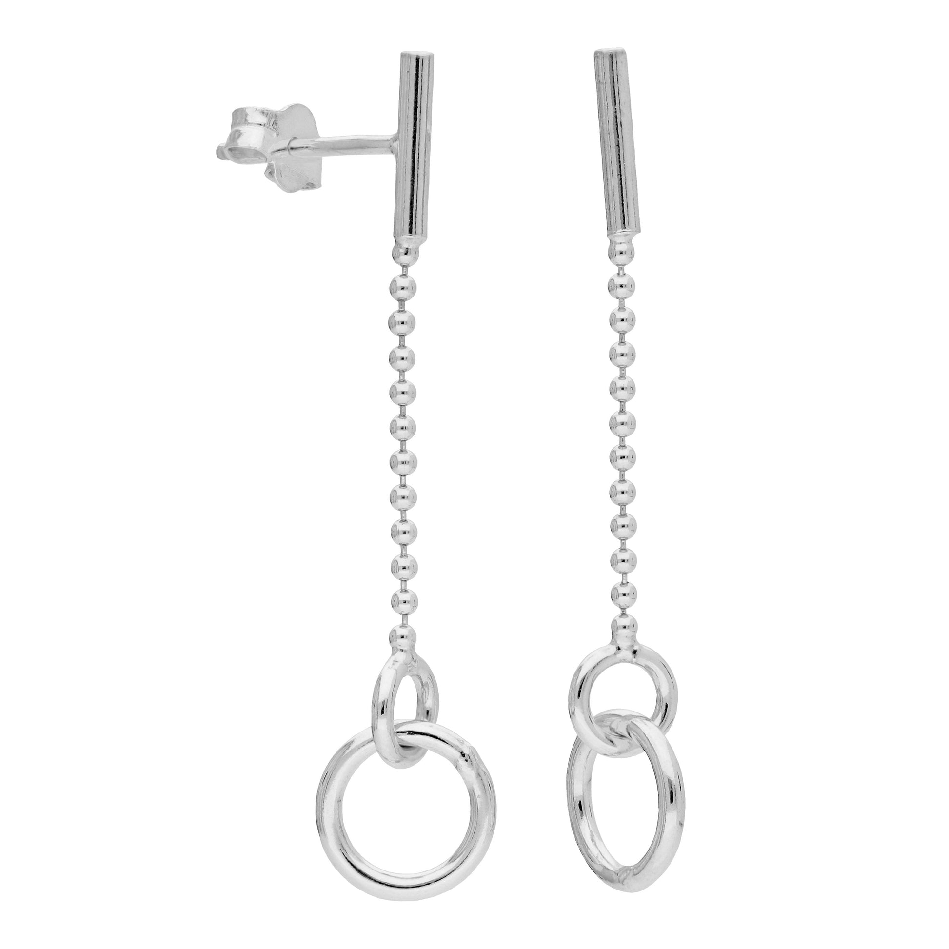 Sterlingsilber Kreis Stange Kügelchenkette Hänge Ohrstecker