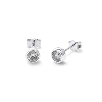 Sterlingsilber Klar CZ April Überschliff 4mm Ohrstecker