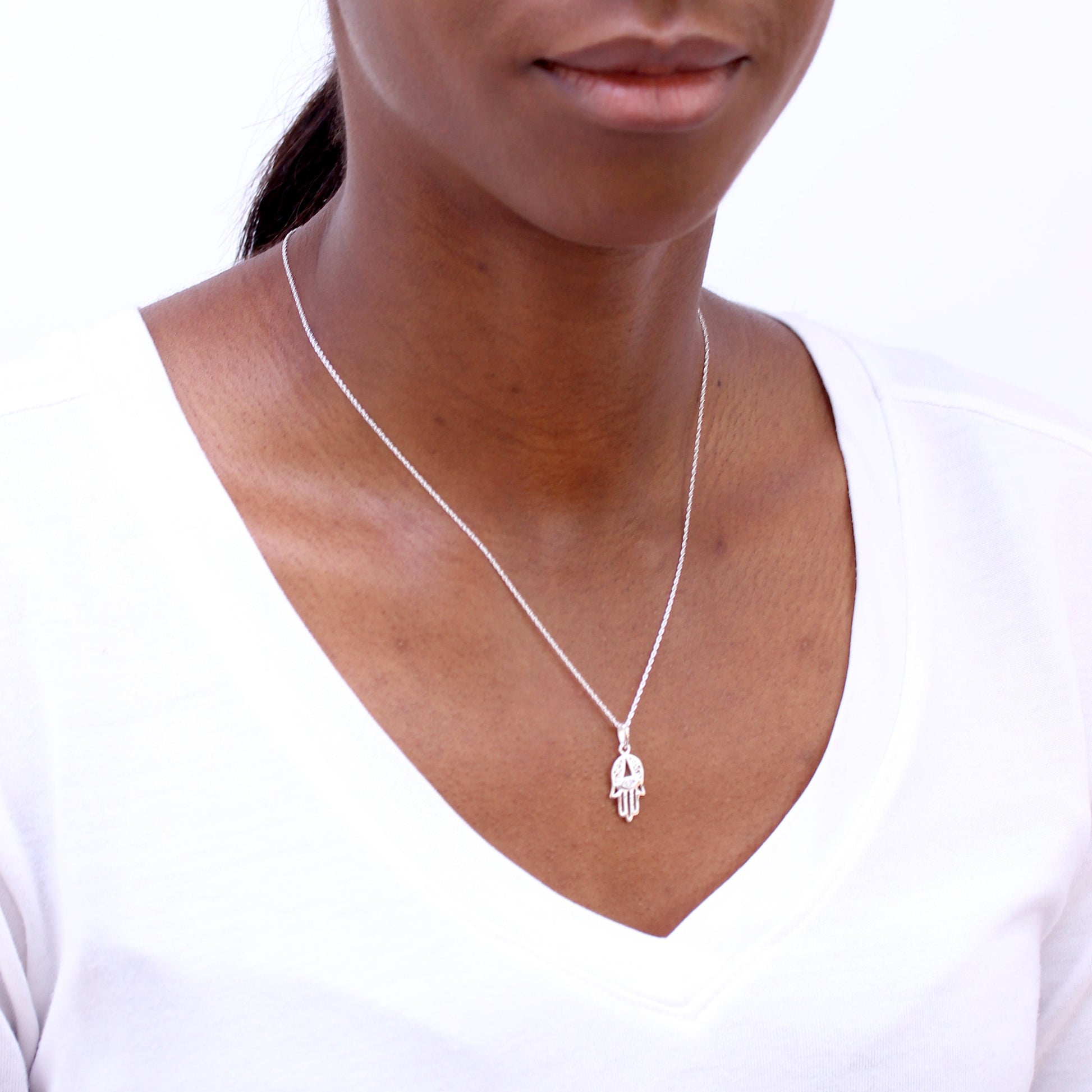 Halskette mit Hamsa-Anhänger aus Sterlingsilber und klarem CZ-Kristall, 16–22 Zoll
