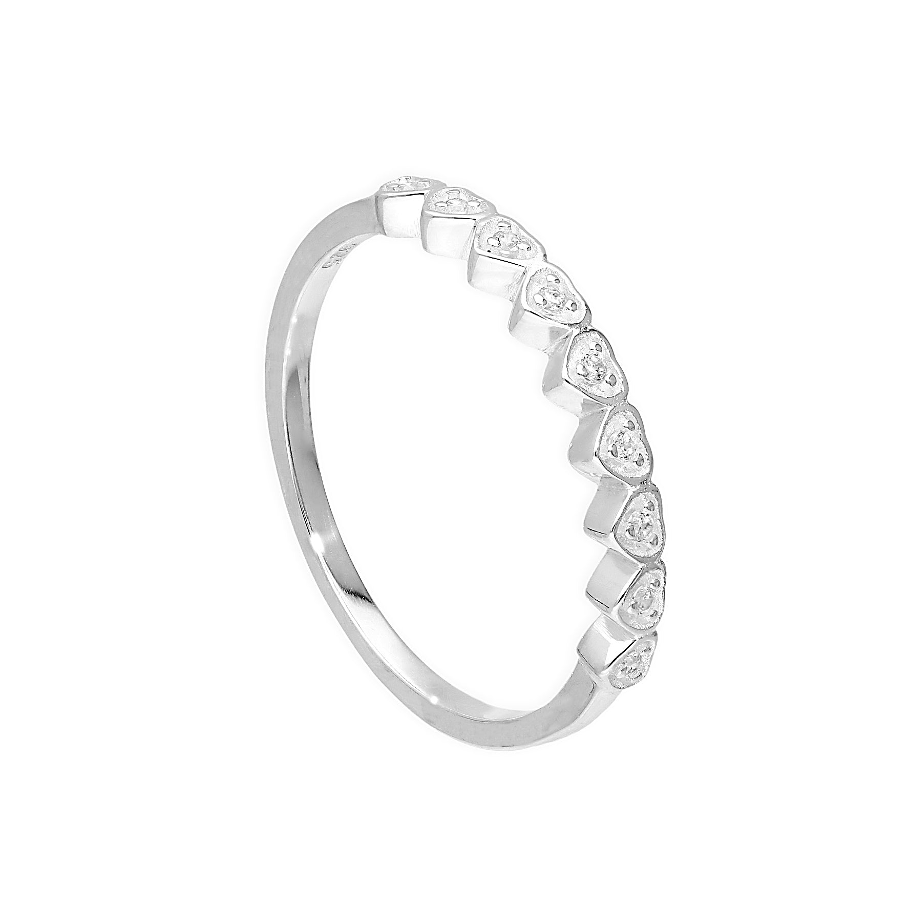 Halber Ewigkeitsring aus Sterlingsilber mit klaren Zirkonia-Herzen, Größen H–V
