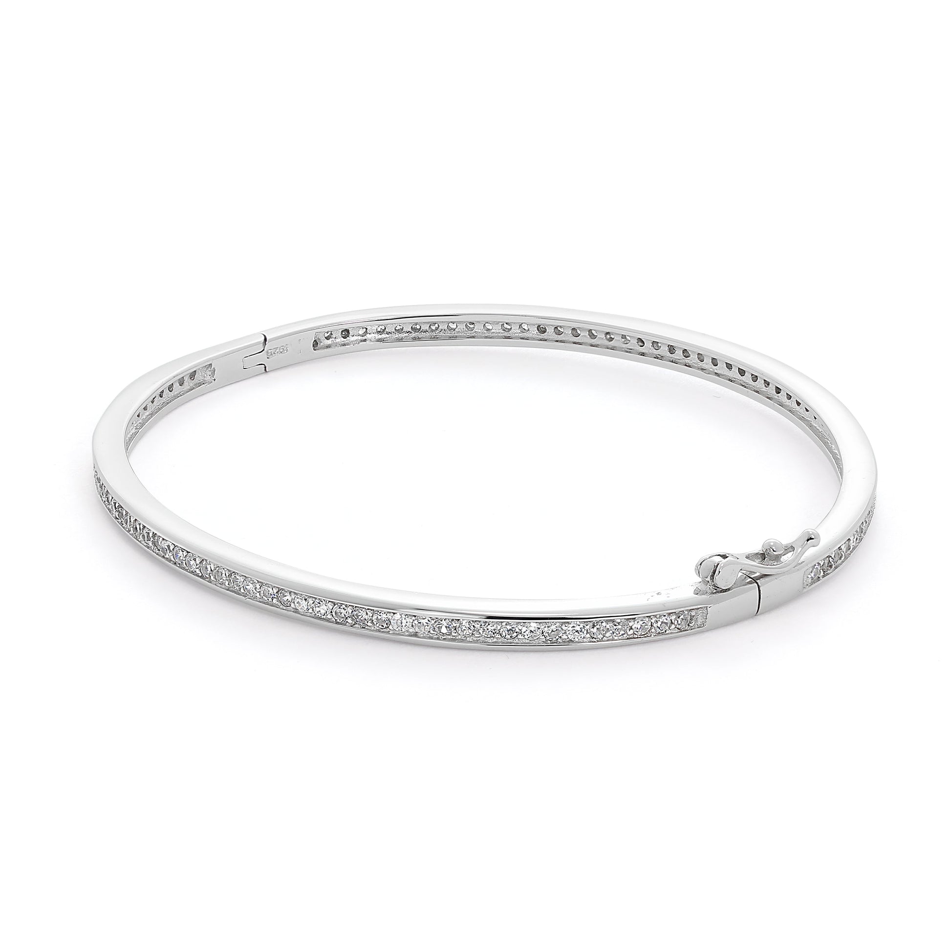 Sterlingsilber & Klar CZ Kristall Scharnier Oval Armreif