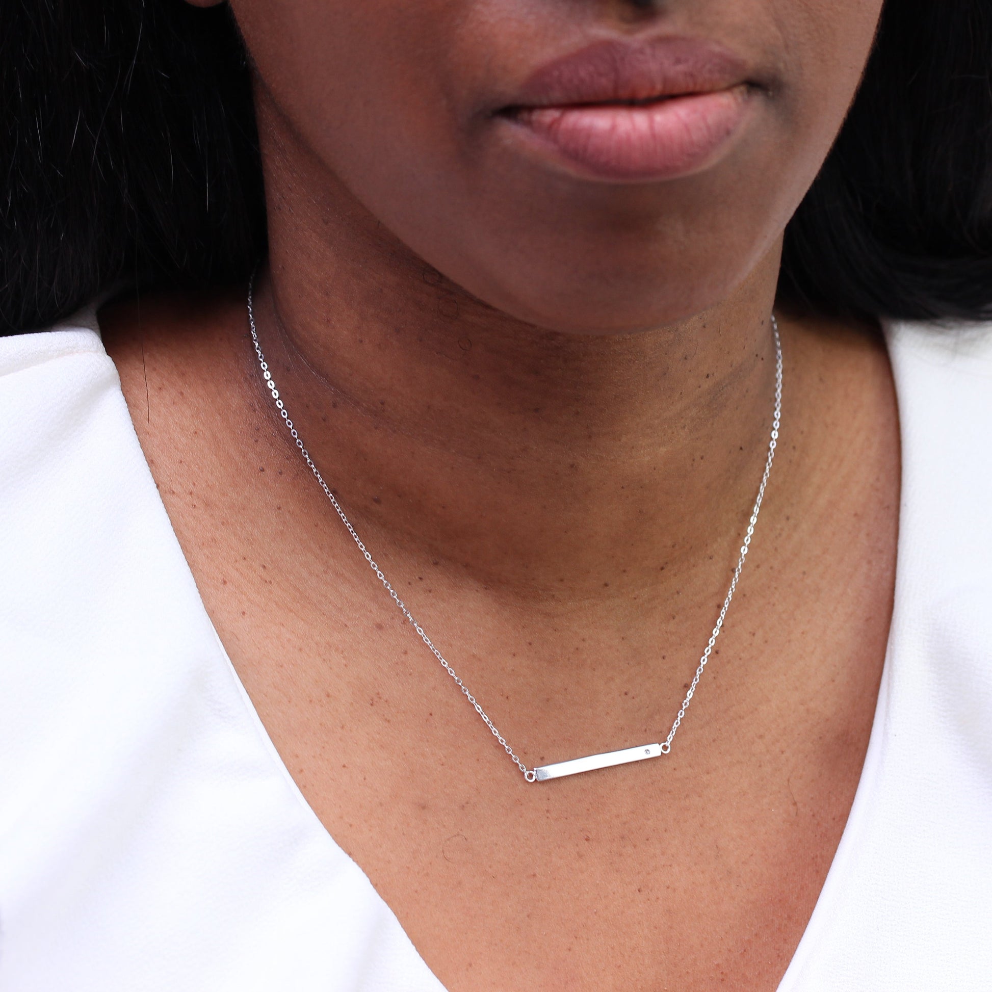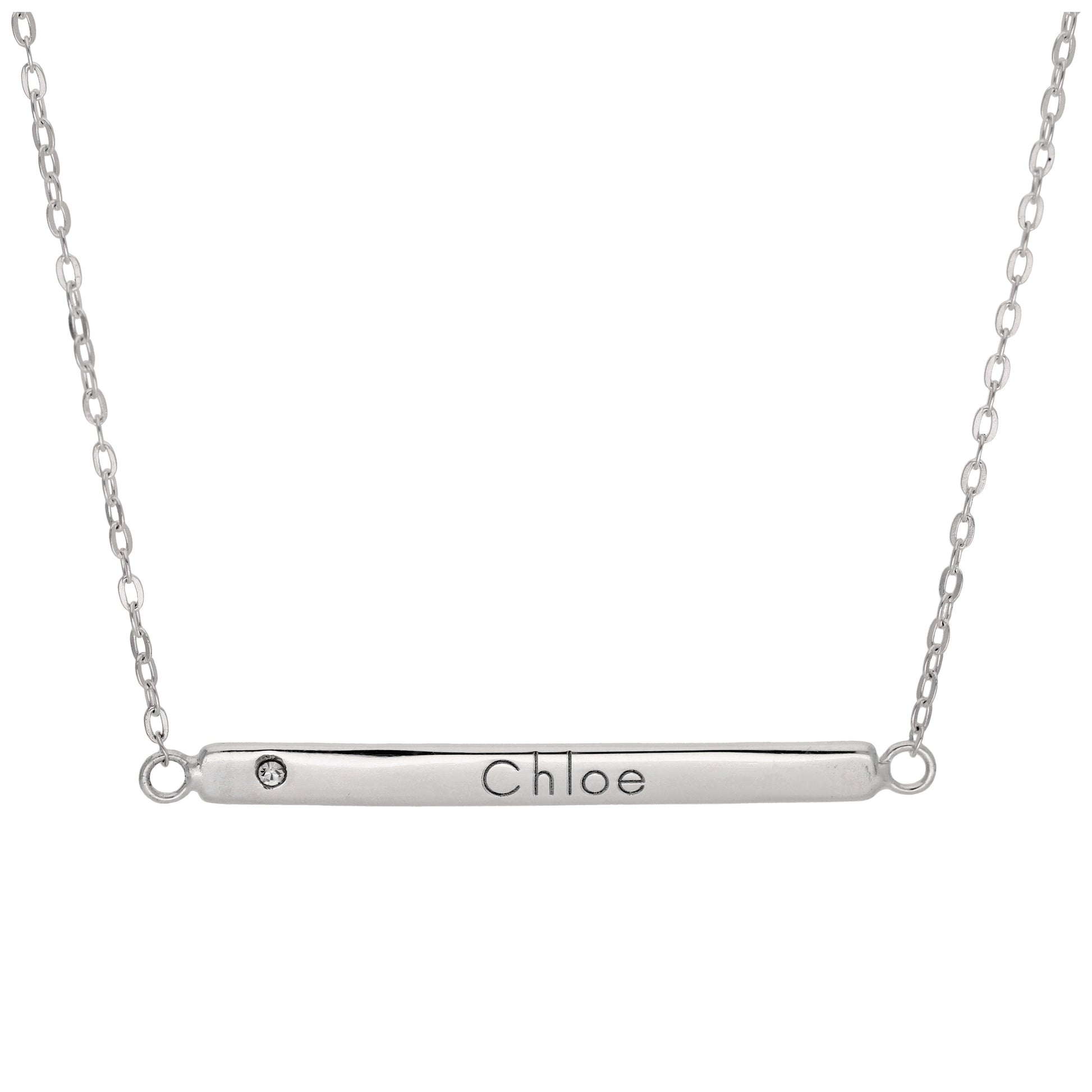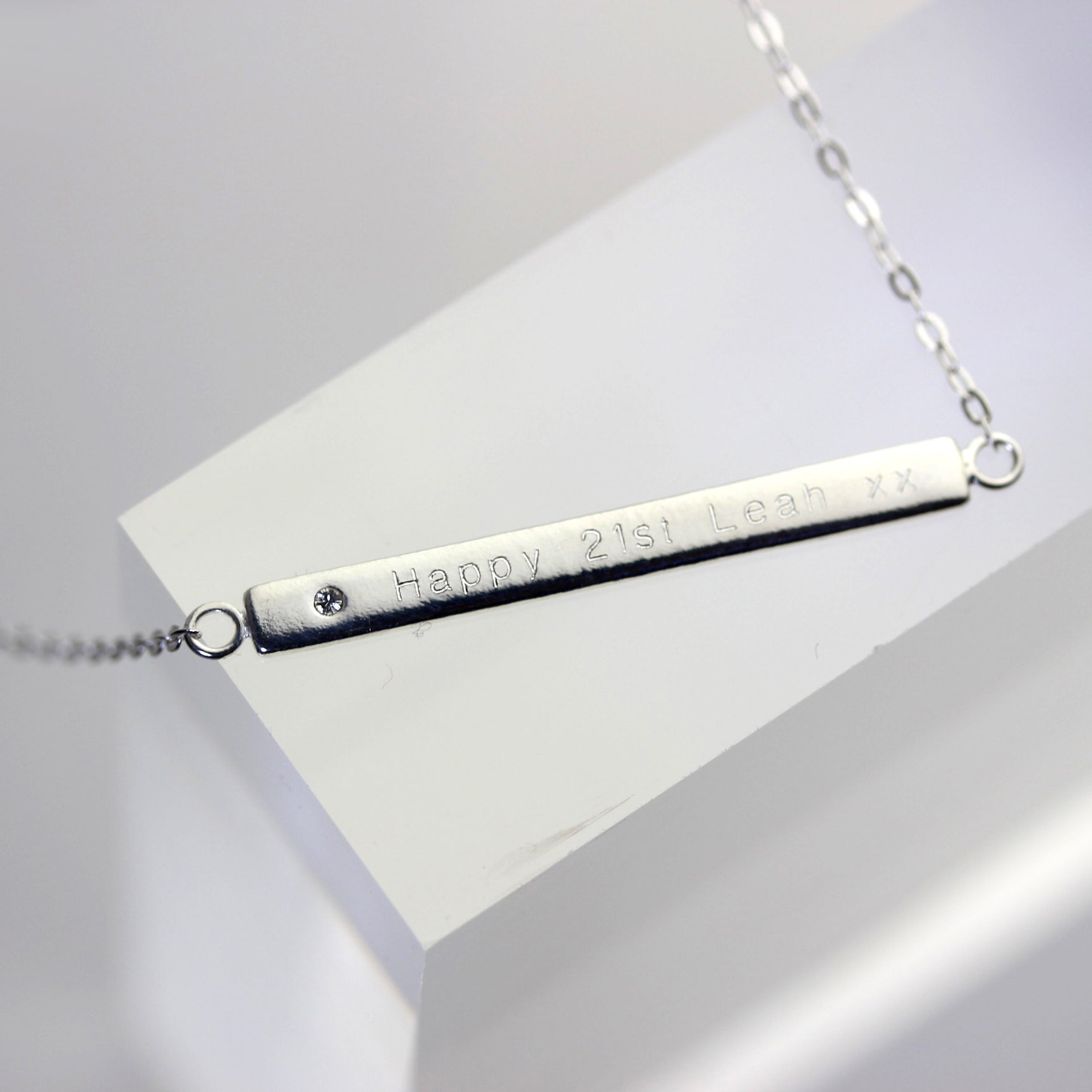 Sterlingsilber Klar CZ Kristall Gravierbar Stange Halskette 45,5cm Kette