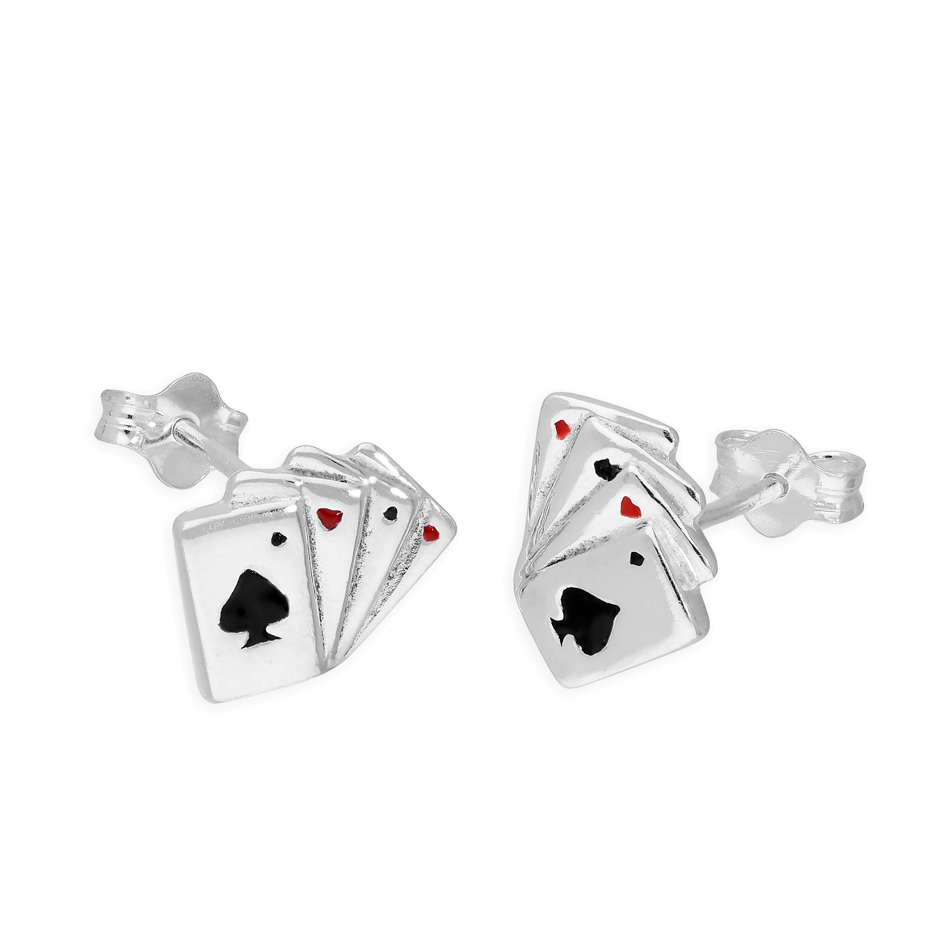 Sterlingsilber & Koloriert Emaille Pik As Ohrstecker