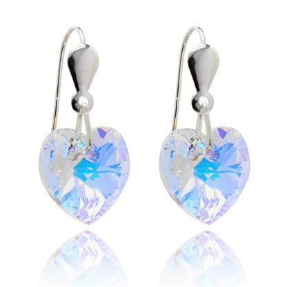 Sterling Silber & CZ Kristall 10mm Herz Ohrringe - 5 Farben