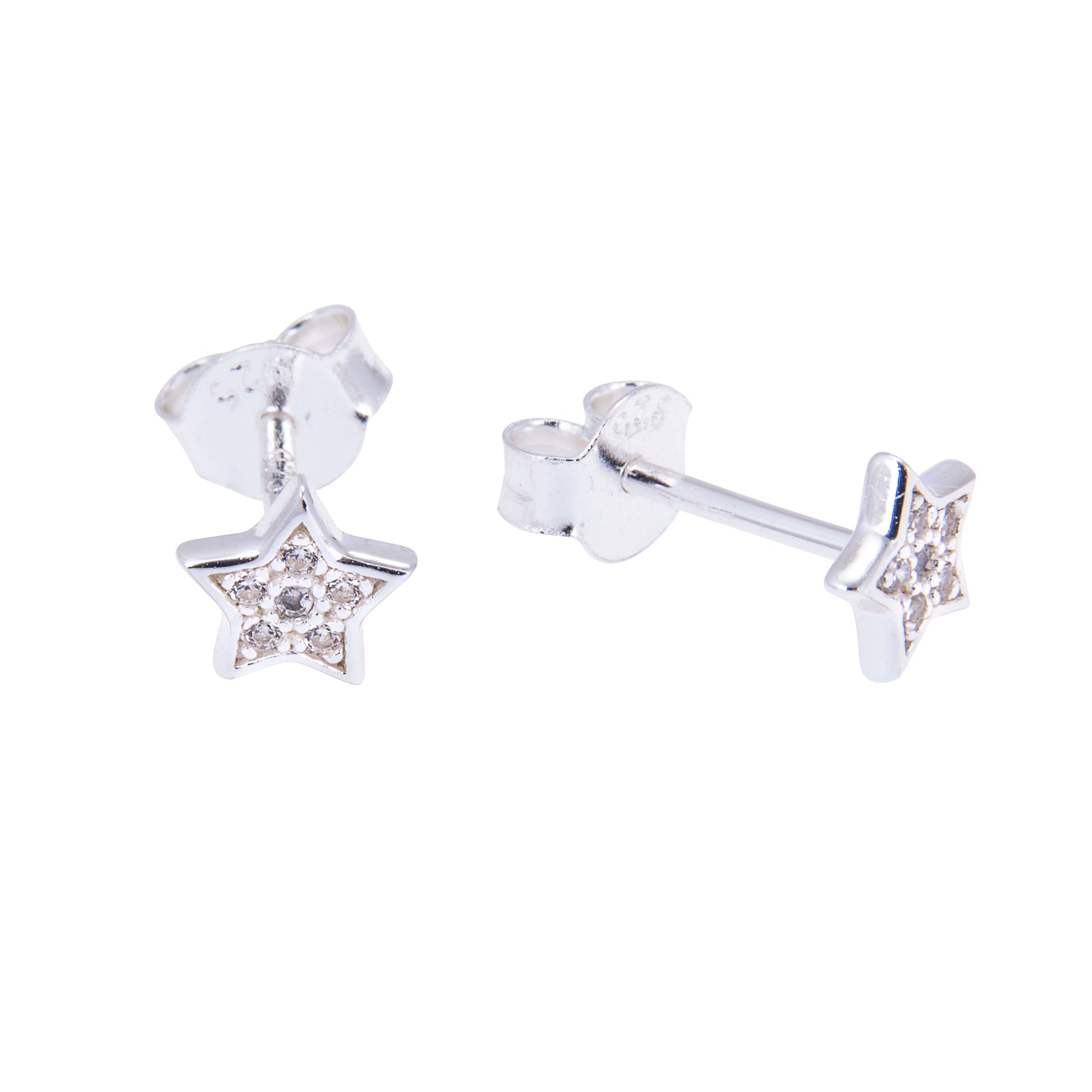 Sterlingsilber & CZ Kristall Verkrustet Stern Ohrstecker