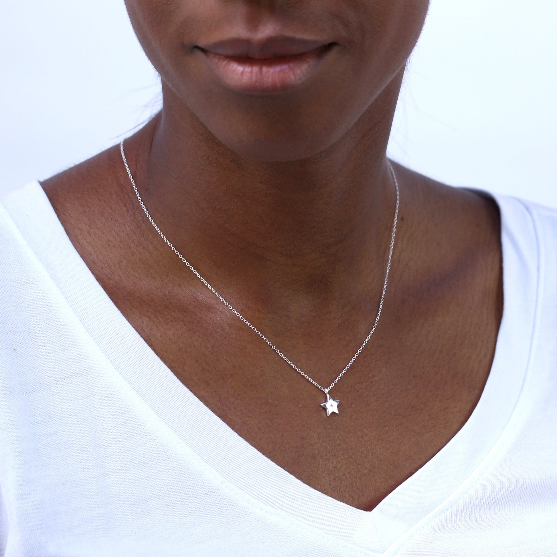 Sterlingsilber & CZ Kristall Stern Anhänger Halskette an 45,5cm Kette