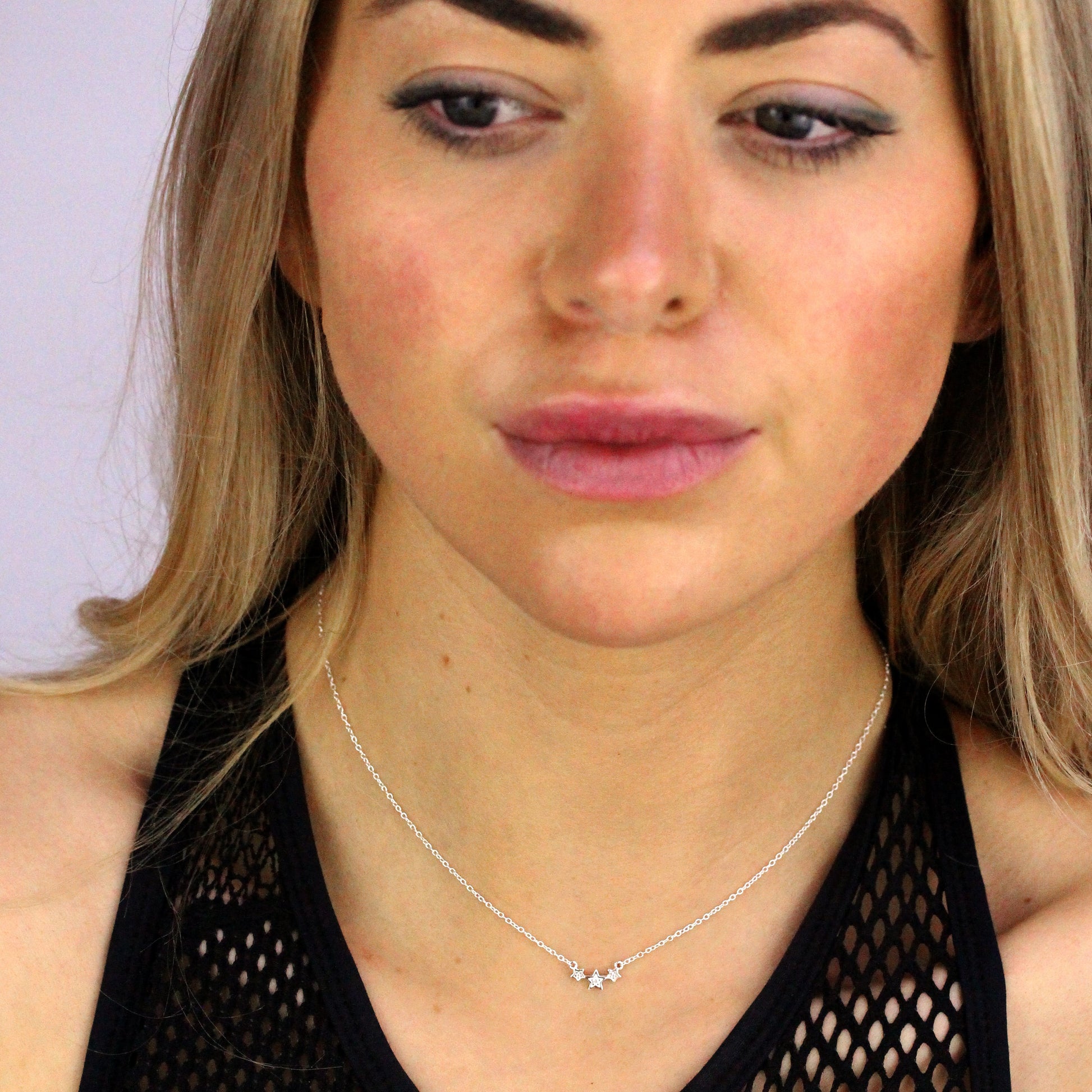 Sterlingsilber & CZ Kristall Dreifach Stern Halskette 40,5cm