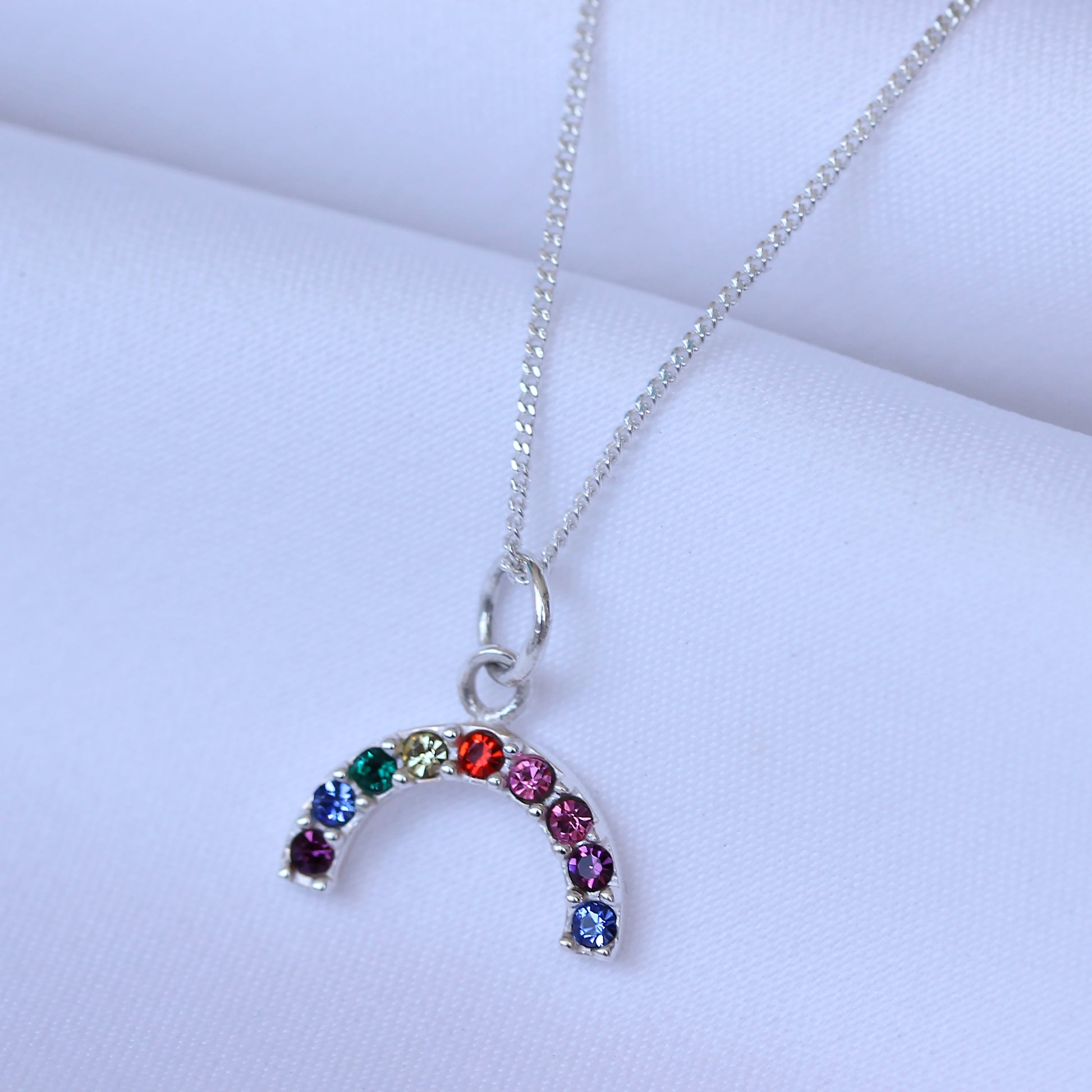 Halskette mit Regenbogen aus Sterlingsilber und Zirkonia, 14–32 Zoll