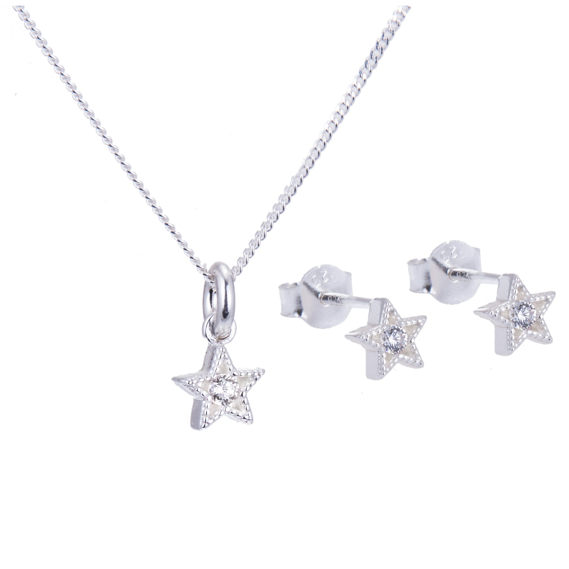 Sterlingsilber CZ Stern Ohrstecker & Halskette Satz 14 - 81,5cm